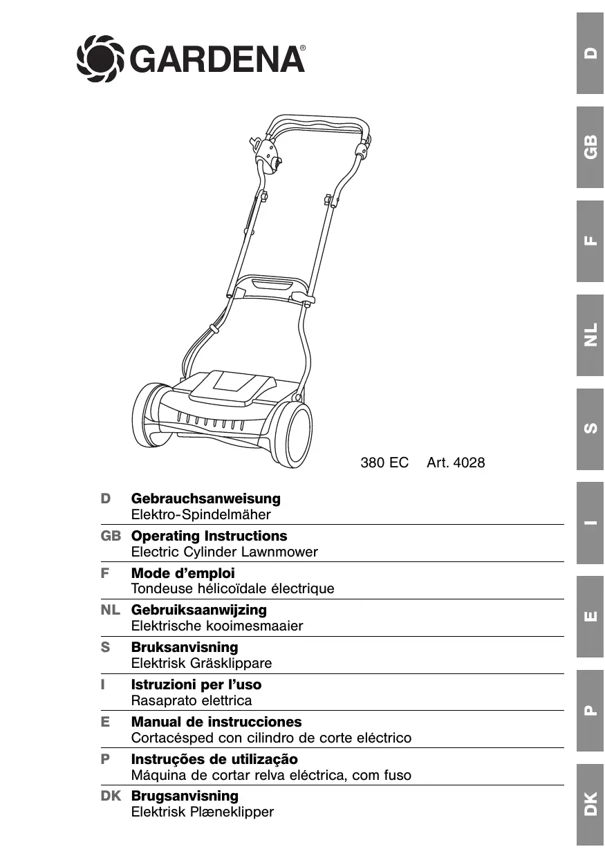 380 EC - Tondeuse à gazon électrique GARDENA - Notice d'utilisation et mode d'emploi gratuit