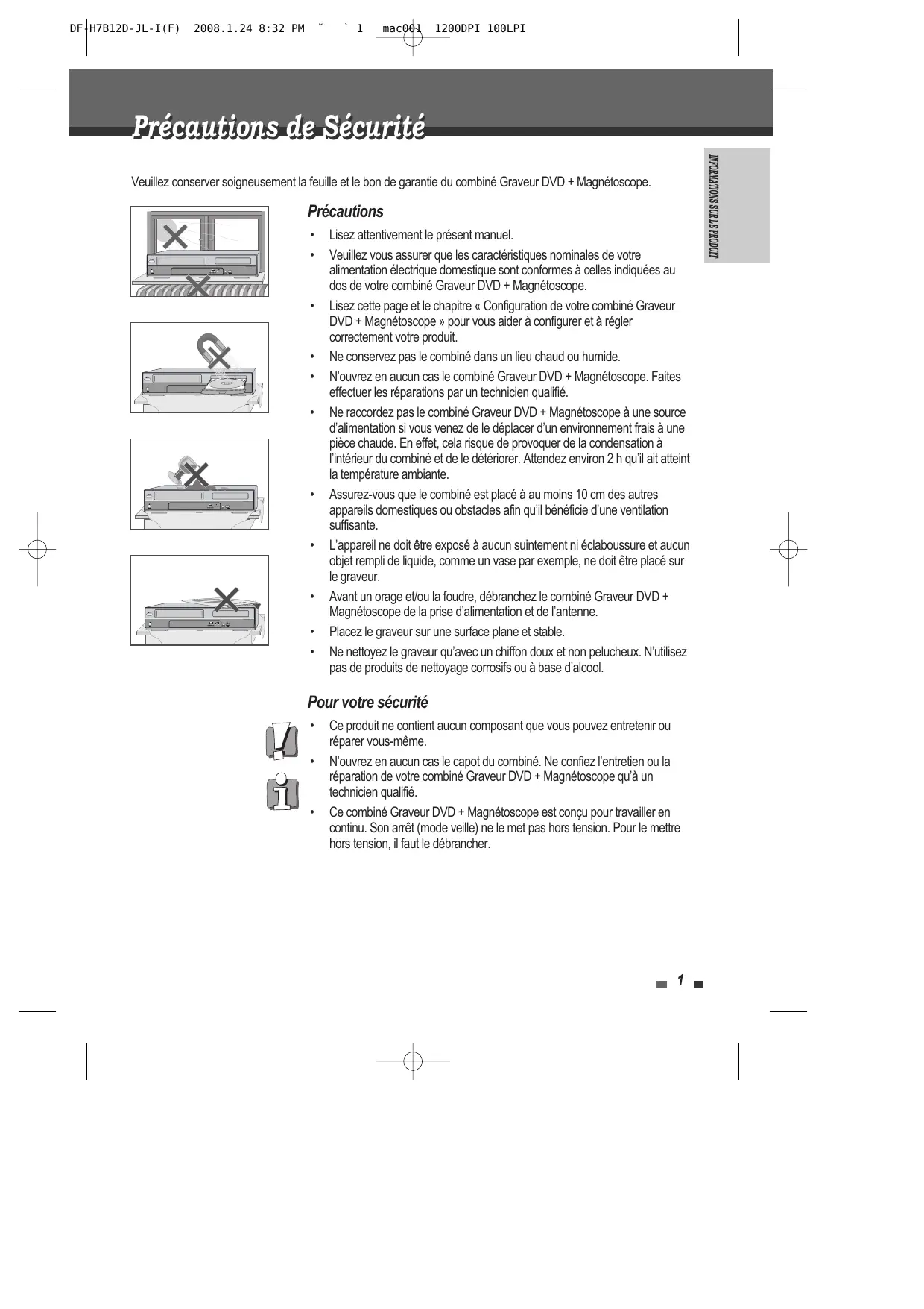 Veuillez conserver soigneusement la feuille et le bon de garantie du combiné Graveur DVD + Magnétoscope.