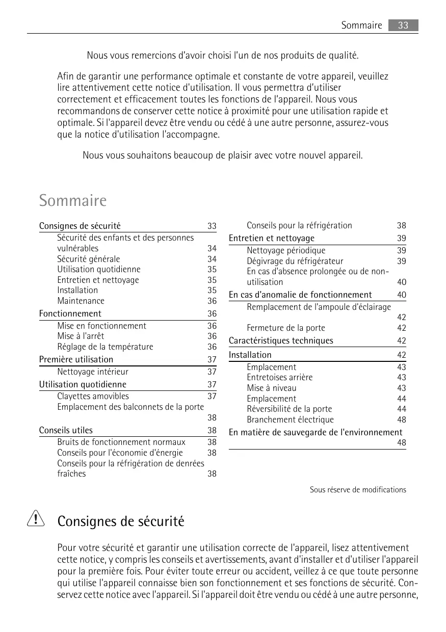 Sous réserve de modifications Consignes de sécurité Pour votre sécurité et garantir une utilisation correcte de l'appareil, lisez attentivement cette notice, y compris les conseils et avertissements, avant d'installer et d'utiliser l'appareil pour la première fois. Pour éviter toute erreur ou accident, veillez à ce que toute personne qui utilise l'appareil connaisse bien son fonctionnement et ses fonctions de sécurité. Conservez cette notice avec l'appareil. Si l'appareil doit être vendu ou cédé à une autre personne,