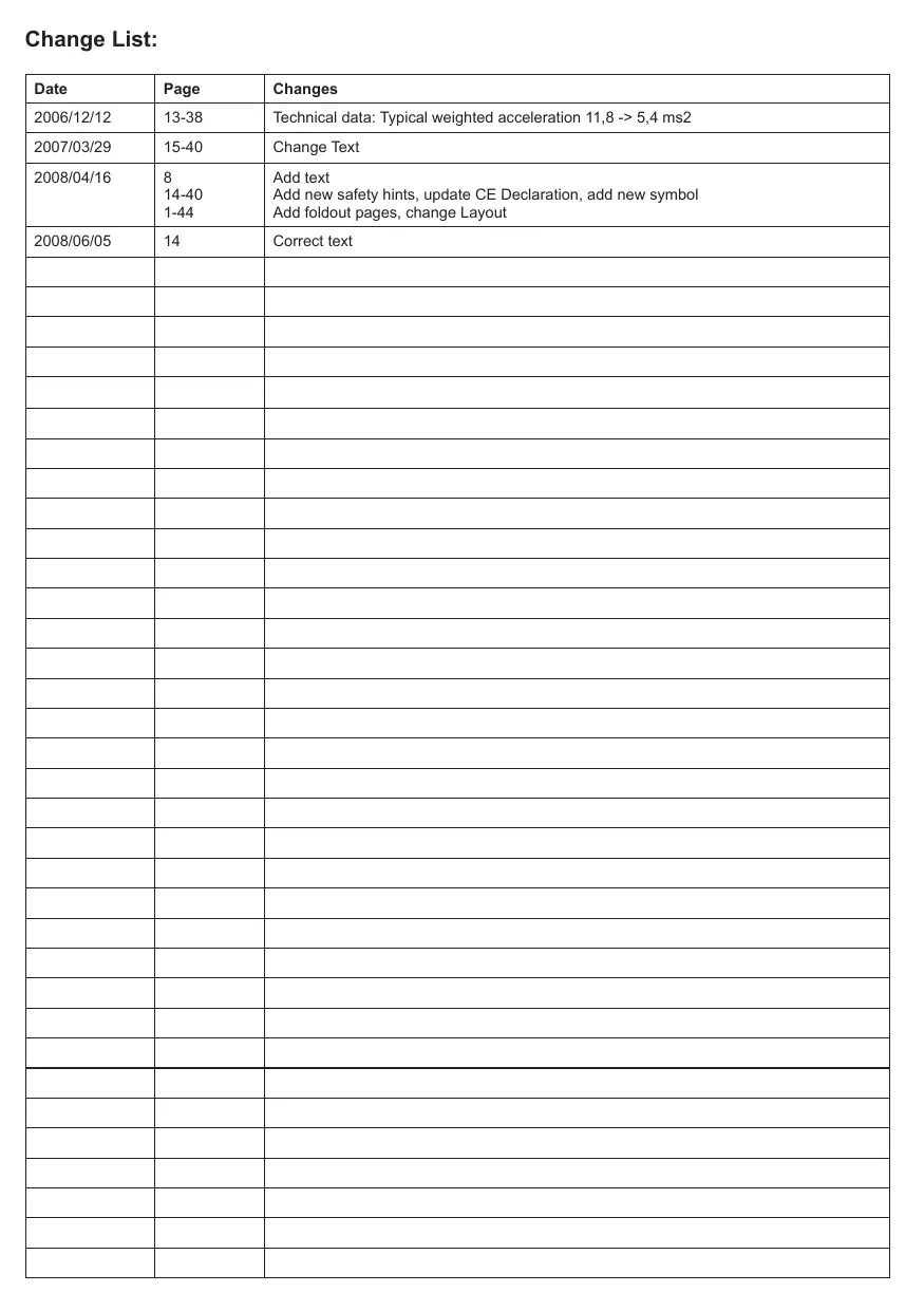 Nous déclarons sous notre responsabilité que ce produit est en conformité avec les normes ou documents normalisés suivants EN 60745, EN 55014-1, EN 55014-2, EN61000-3-2, EN61000-3-3, conformément aux règlements 98/37/CE, 2004/108/CE