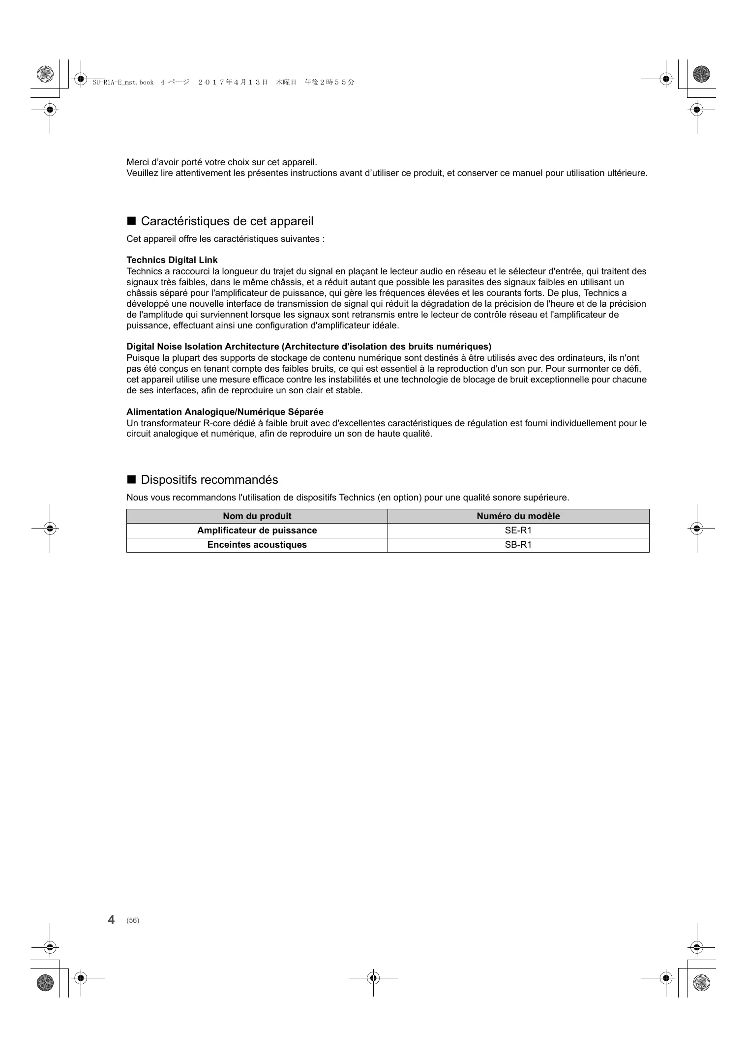 - Toutes les informations ci-dessus sont celles en cours à d'avril 2017 et elles peuvent faire l'objet de mises à jour sans avis préalable. Pour avoir des informations sur les mises à jour, visitez le site Web ci-dessous. www.technics.com/support/firmware/