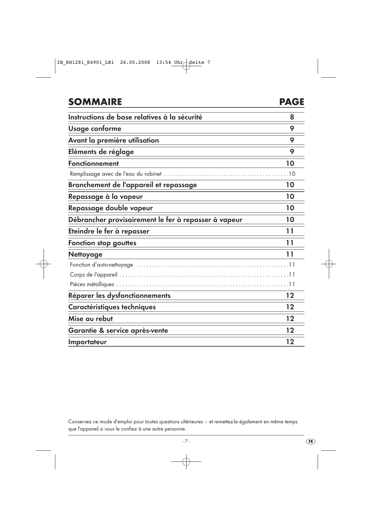 13:54 Uhr Seite 7 SOMMAIRE PAGE Instructions de base relatives à la sécurité