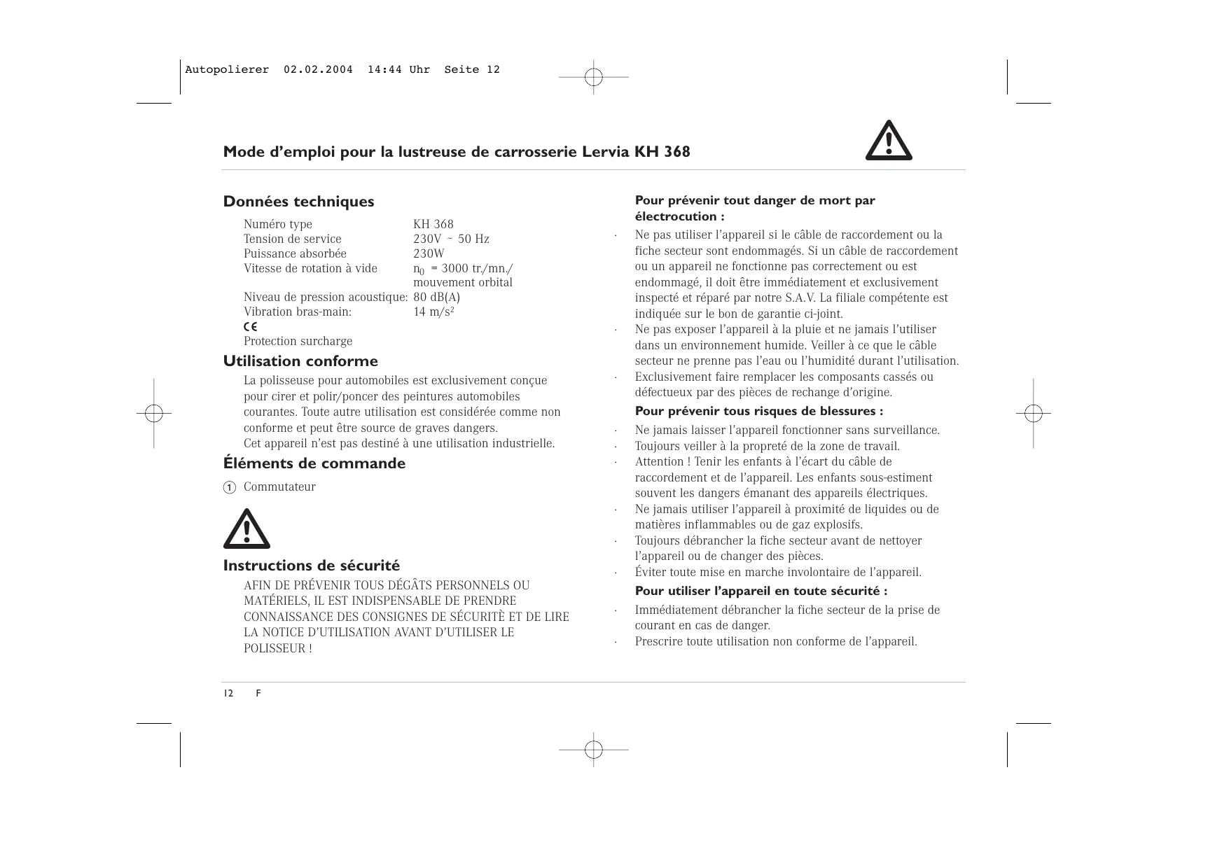 MODE D'EMPLOI KH 368 LERVIA