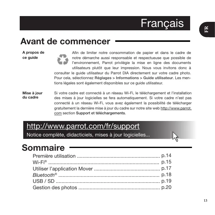 Téléchargez la notice de votre au format PDF gratuitement ! Retrouvez votre notice DIA - PARROT et reprennez votre appareil électronique en main. Sur cette page sont publiés tous les documents nécessaires à l'utilisation de votre appareil DIA de la marque PARROT.
