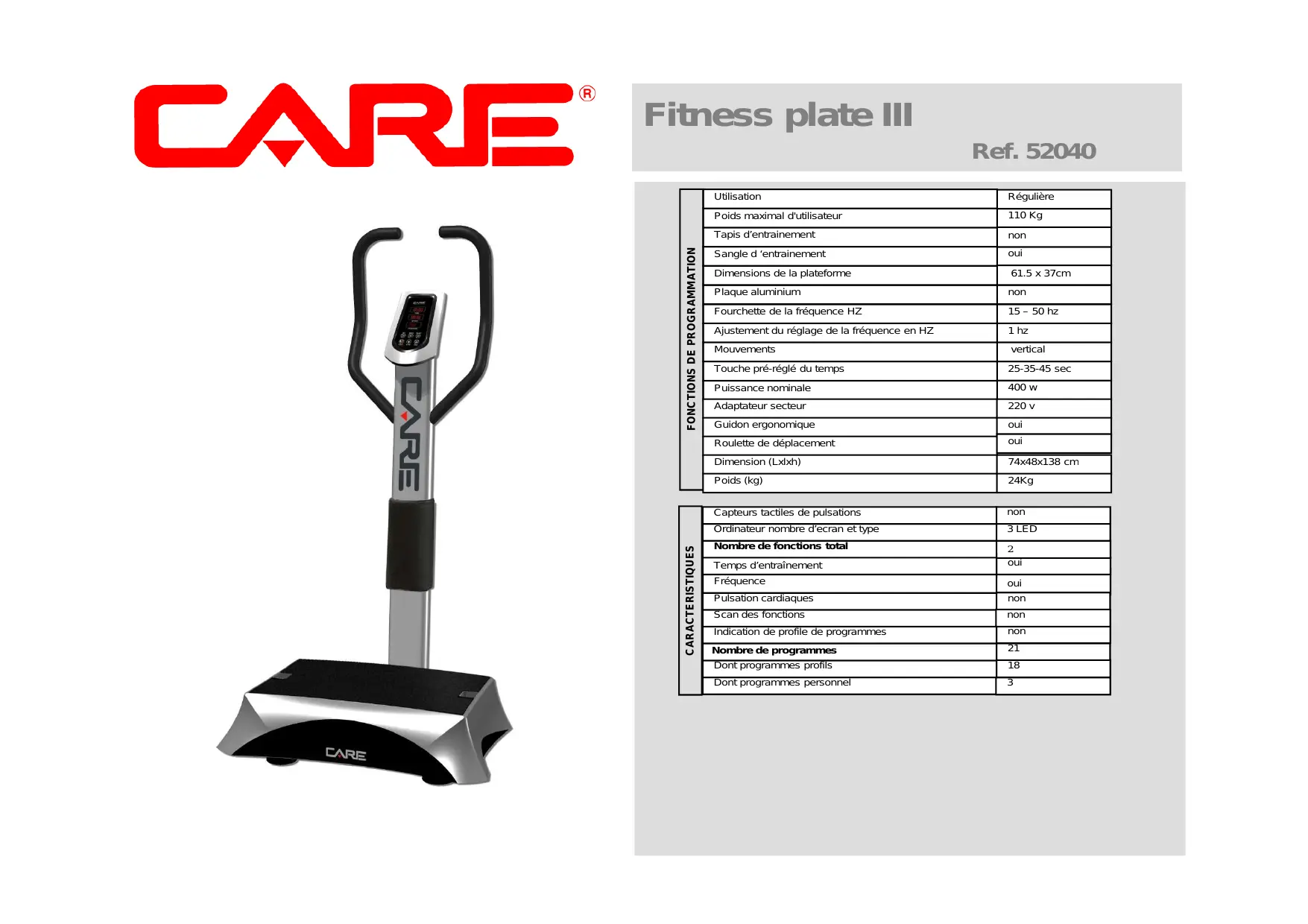 FITNESS PLATE III - Appareil de fitness CARE FITNESS - Notice d'utilisation et mode d'emploi gratuit