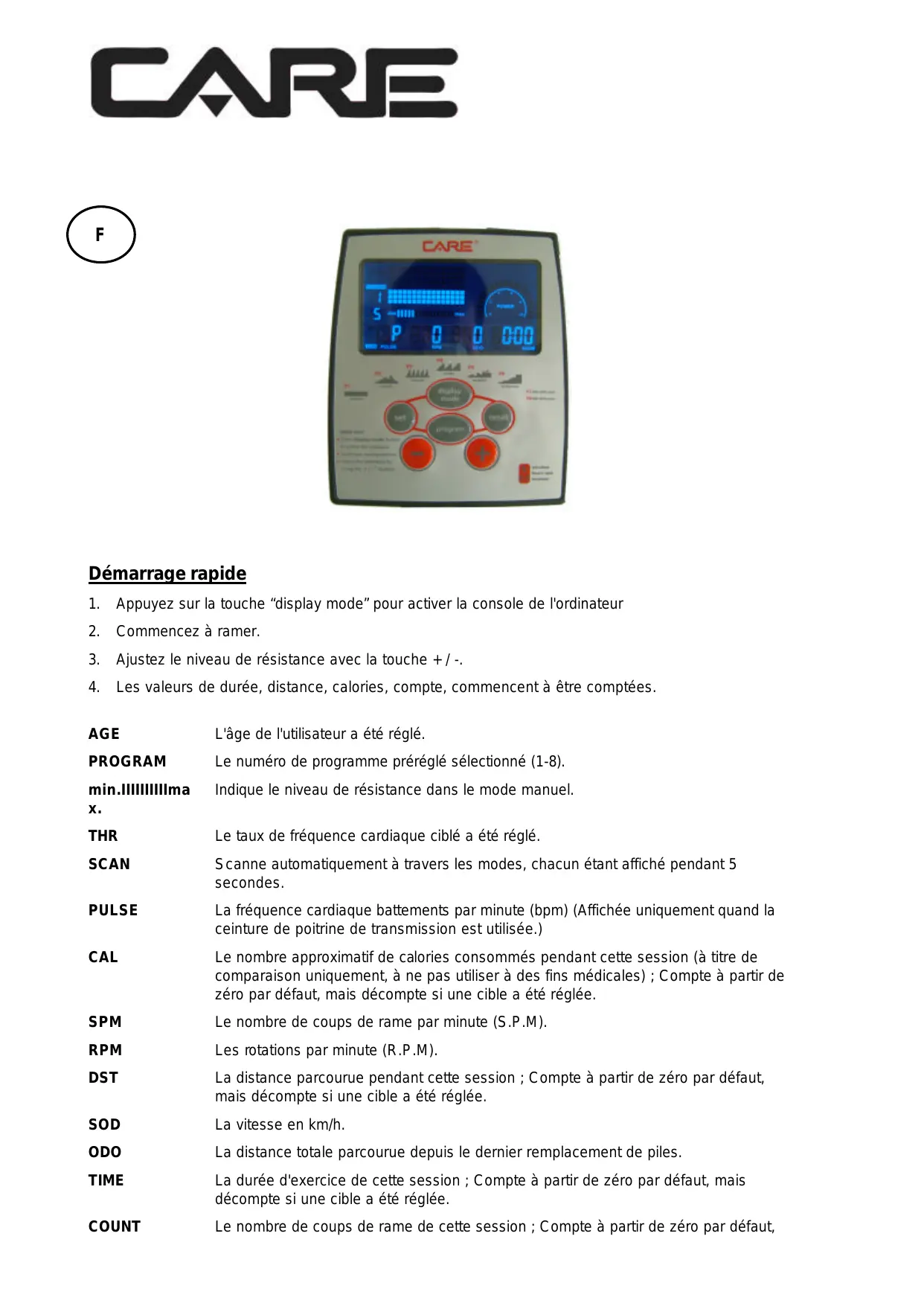 MODE D'EMPLOI RAMEUR CARE FITNESS