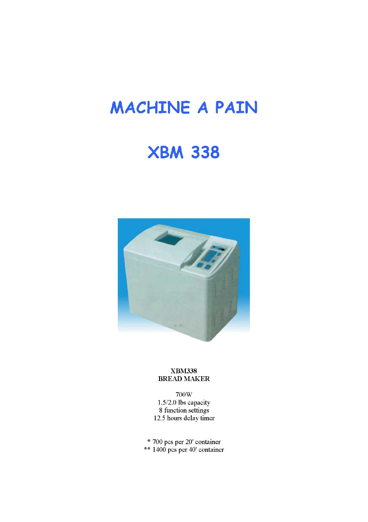 | Capacité de pain | 0,7 à 1 kg environ |