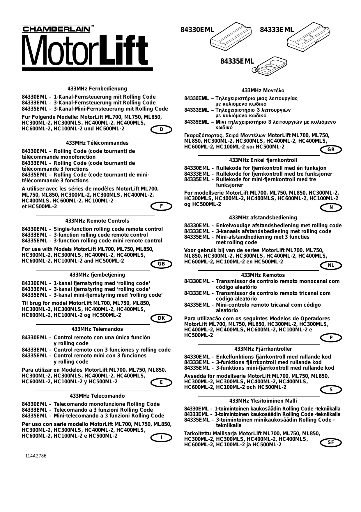 Retrouvez gratuitement la notice de l'appareil 84335EML CHAMBERLAIN au format PDF.