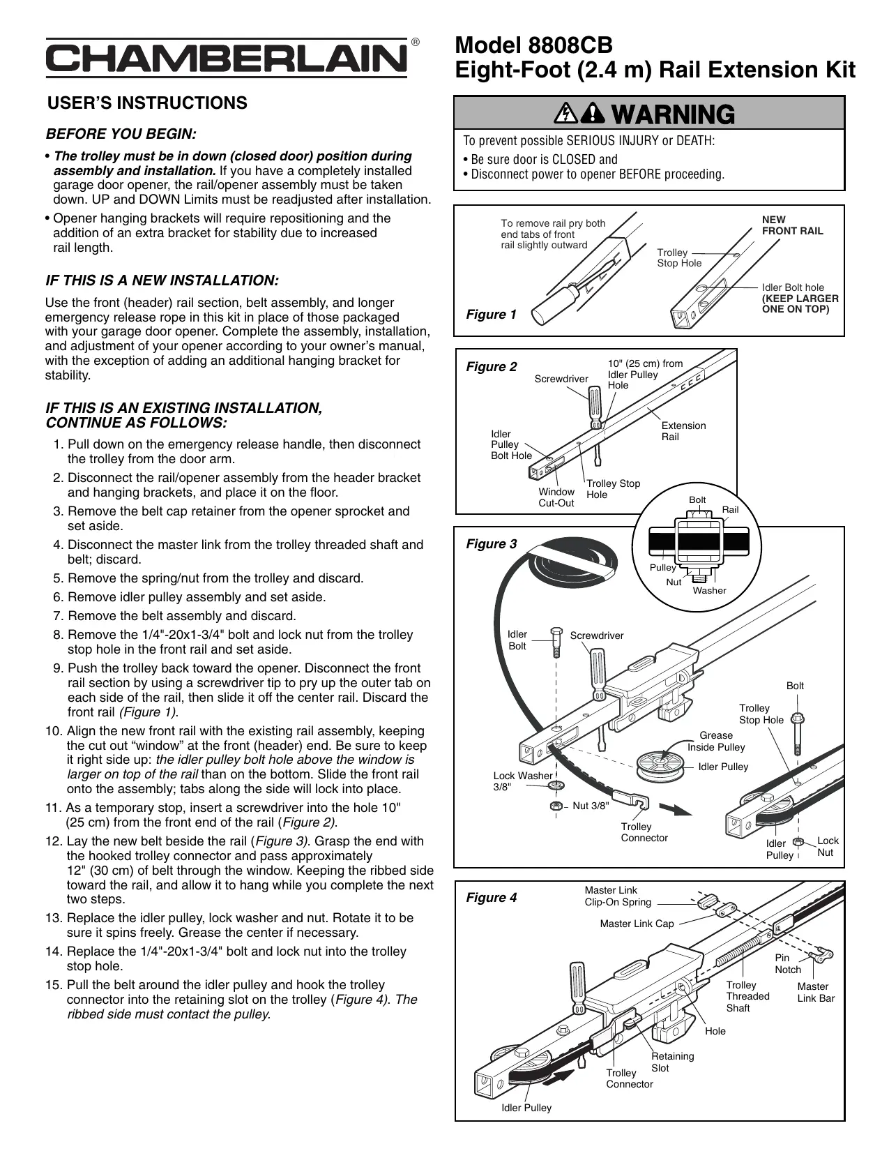 Retrouvez gratuitement la notice de l'appareil 8808CB CHAMBERLAIN au format PDF.