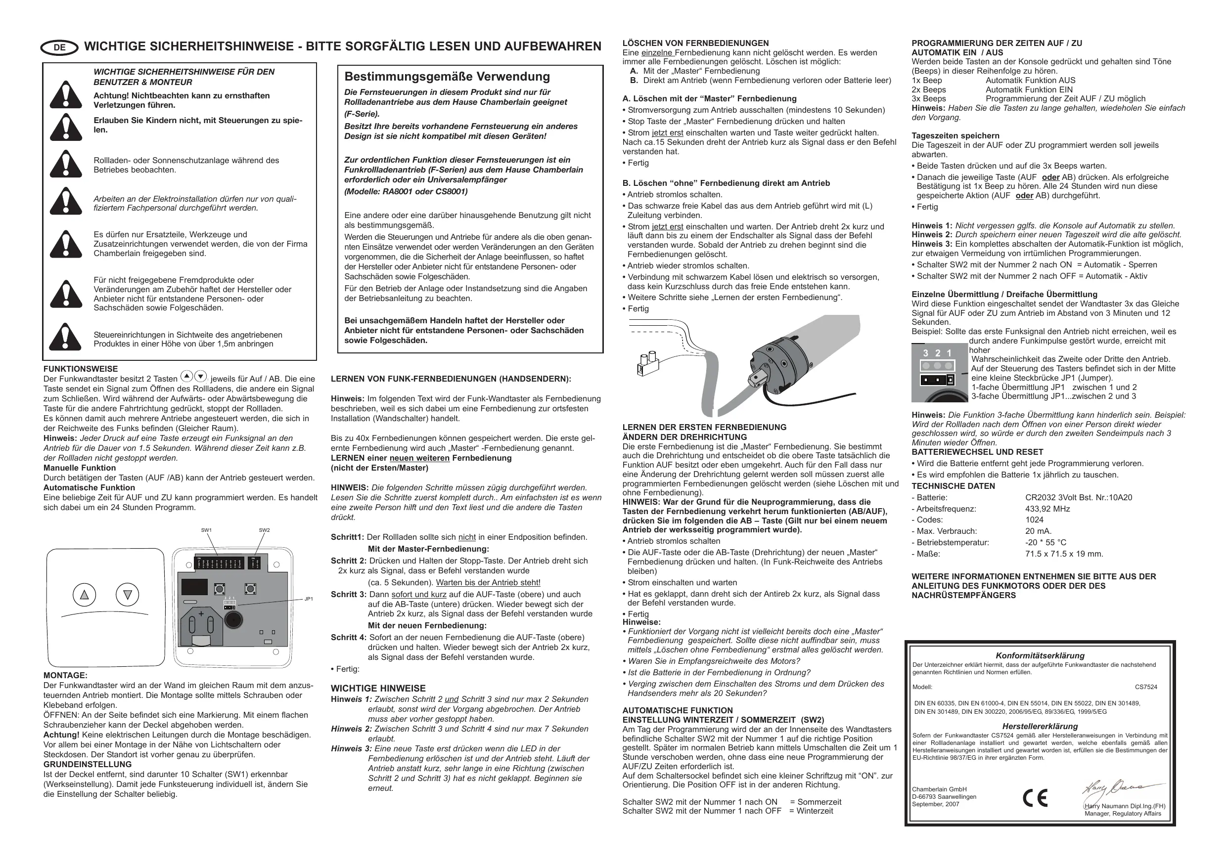 Retrouvez gratuitement la notice de l'appareil CS7524 CHAMBERLAIN au format PDF.