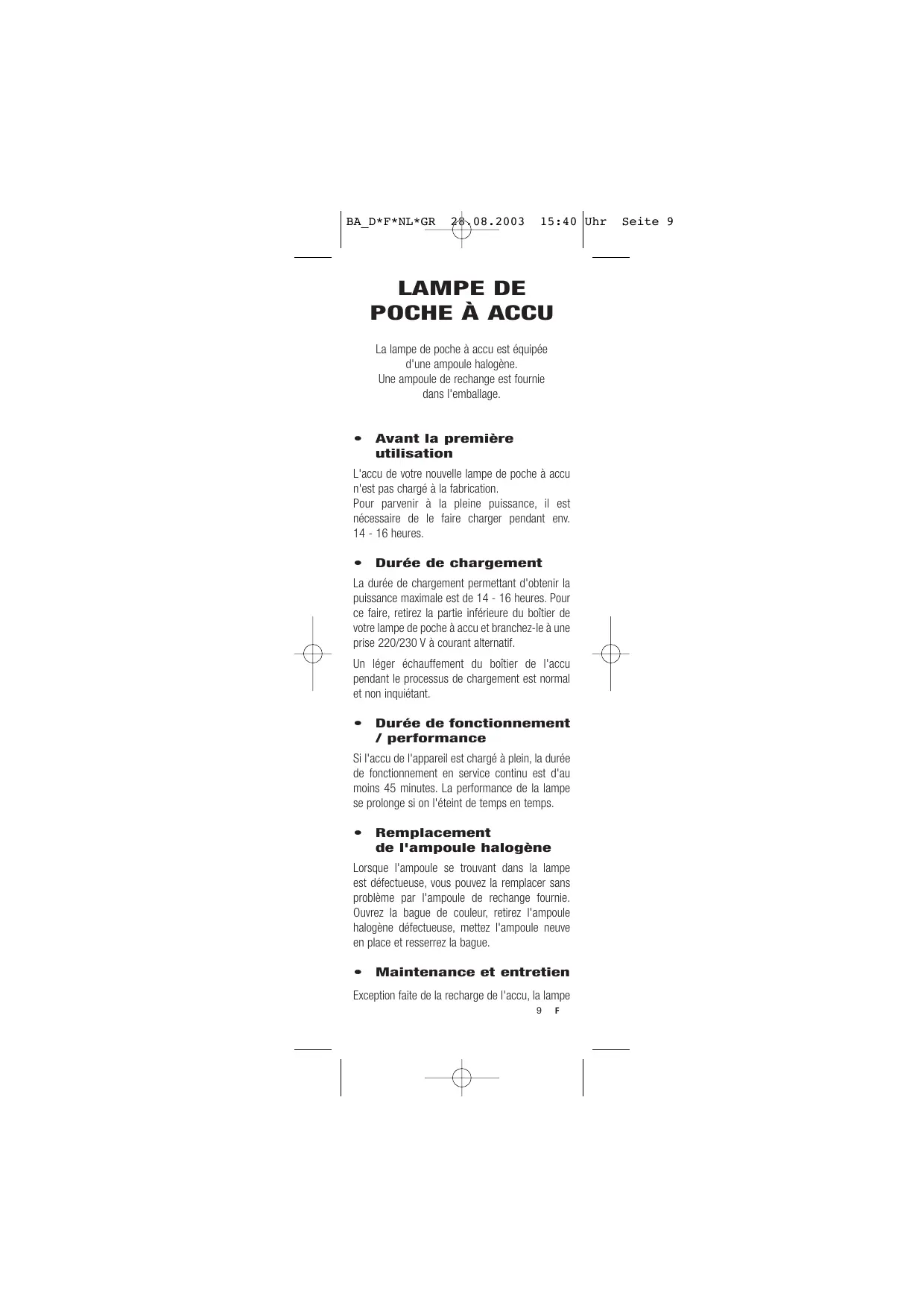L'accu de votre nouvelle lampe de poche à accu n'est pas chargeé à la fabrication.