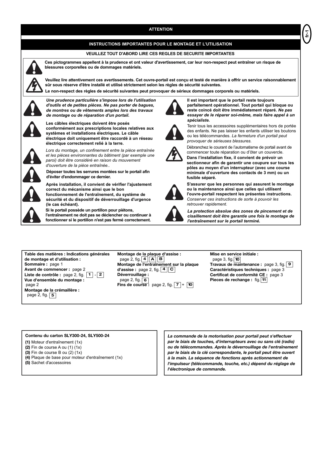 Les ouvre-portails automatiques modèles SLY300-24, SLY500-24 satisfont aux exigences des sections applicables des normes