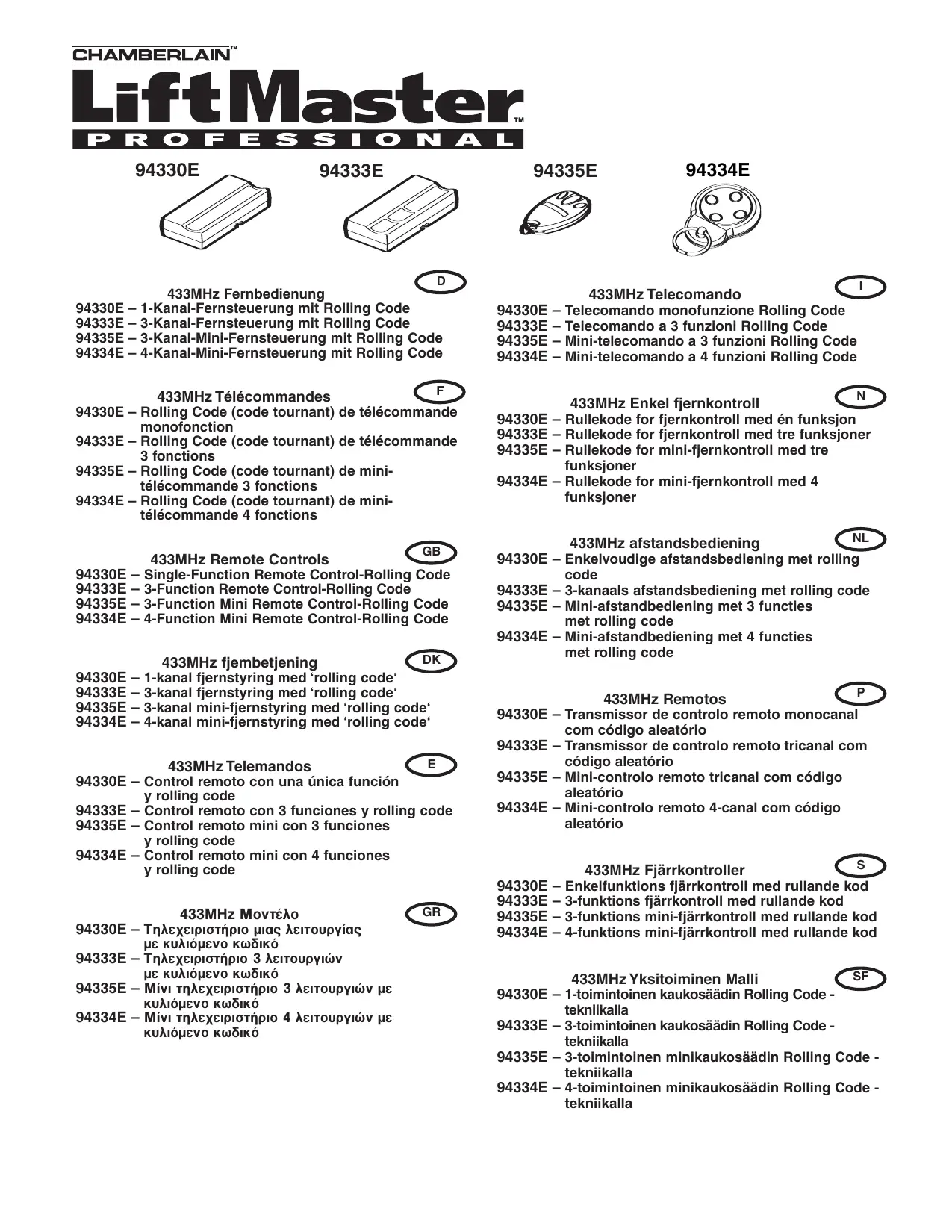 94335 - Télécommande CHAMBERLAIN - Notice d'utilisation et mode d'emploi gratuit