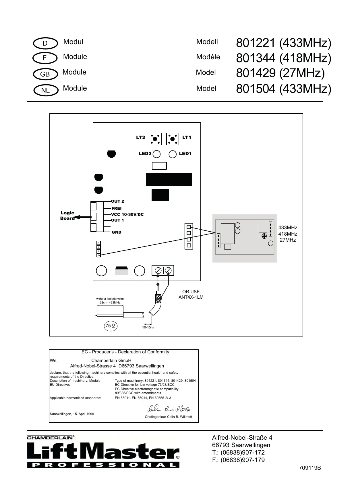 Téléchargez la notice de votre au format PDF gratuitement ! Retrouvez votre notice 801221 - CHAMBERLAIN et reprennez votre appareil électronique en main. Sur cette page sont publiés tous les documents nécessaires à l'utilisation de votre appareil 801221 de la marque CHAMBERLAIN.