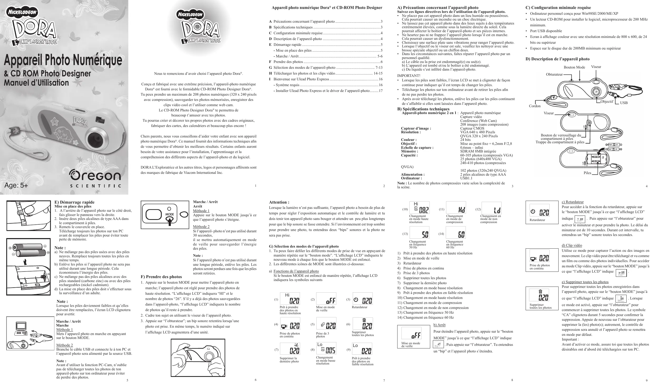 MODE D'EMPLOI APPAREIL PHOTO NUMÉRIQUE DORA OREGON SCIENTIFIC