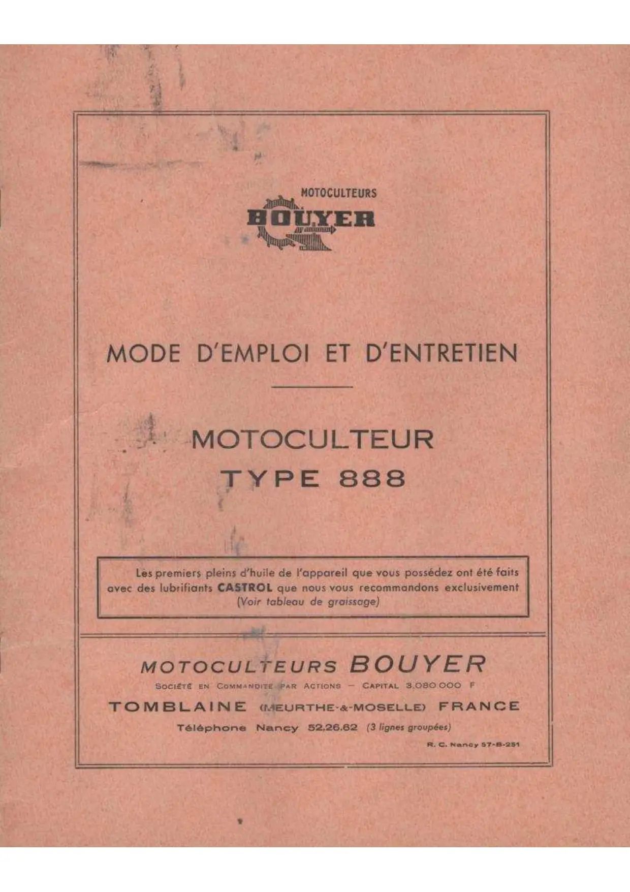 Retrouvez gratuitement la notice de l'appareil MOTOCULTEUR 888 BOUYER au format PDF.