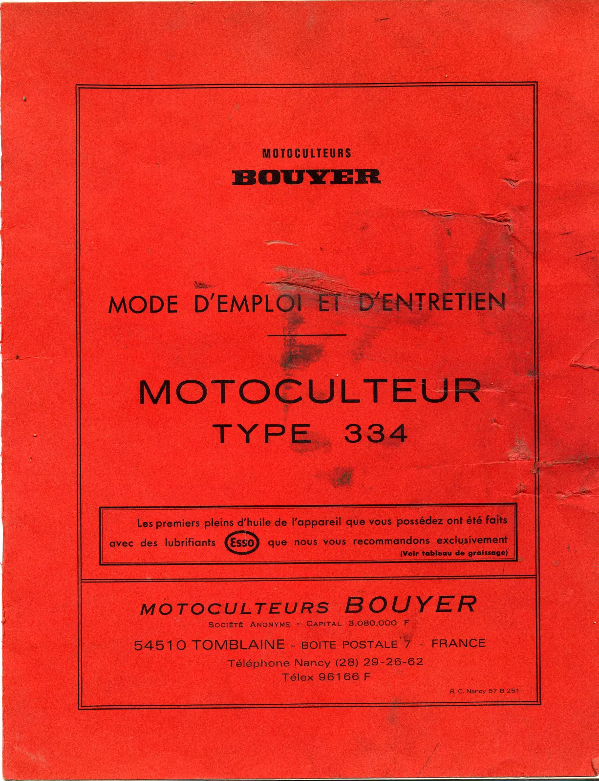 Retrouvez gratuitement la notice de l'appareil MOTOCULTEUR TYPE 334 BOUYER au format PDF.