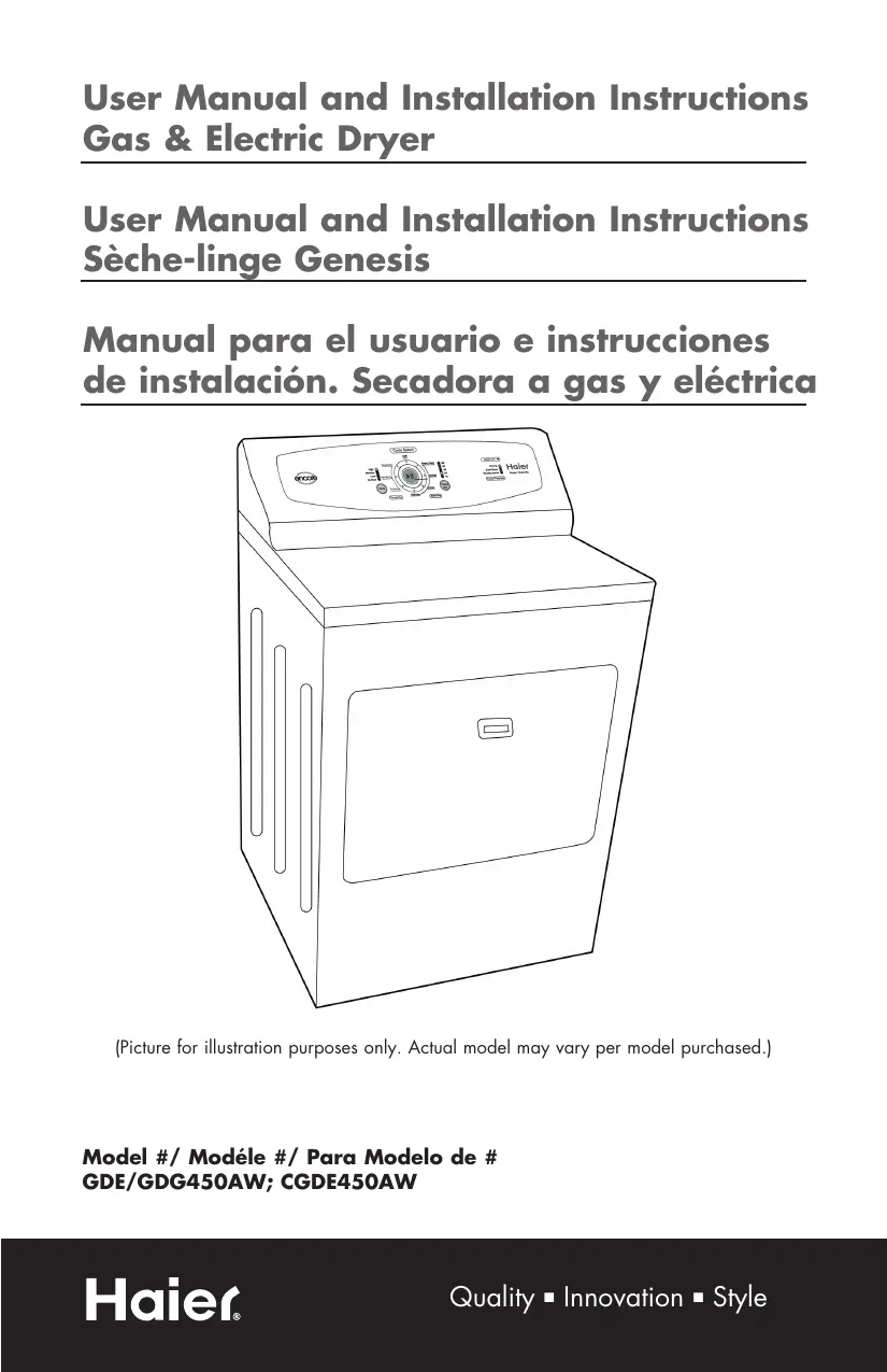 Retrouvez gratuitement la notice de l'appareil GDE 450 AW HAIER au format PDF.