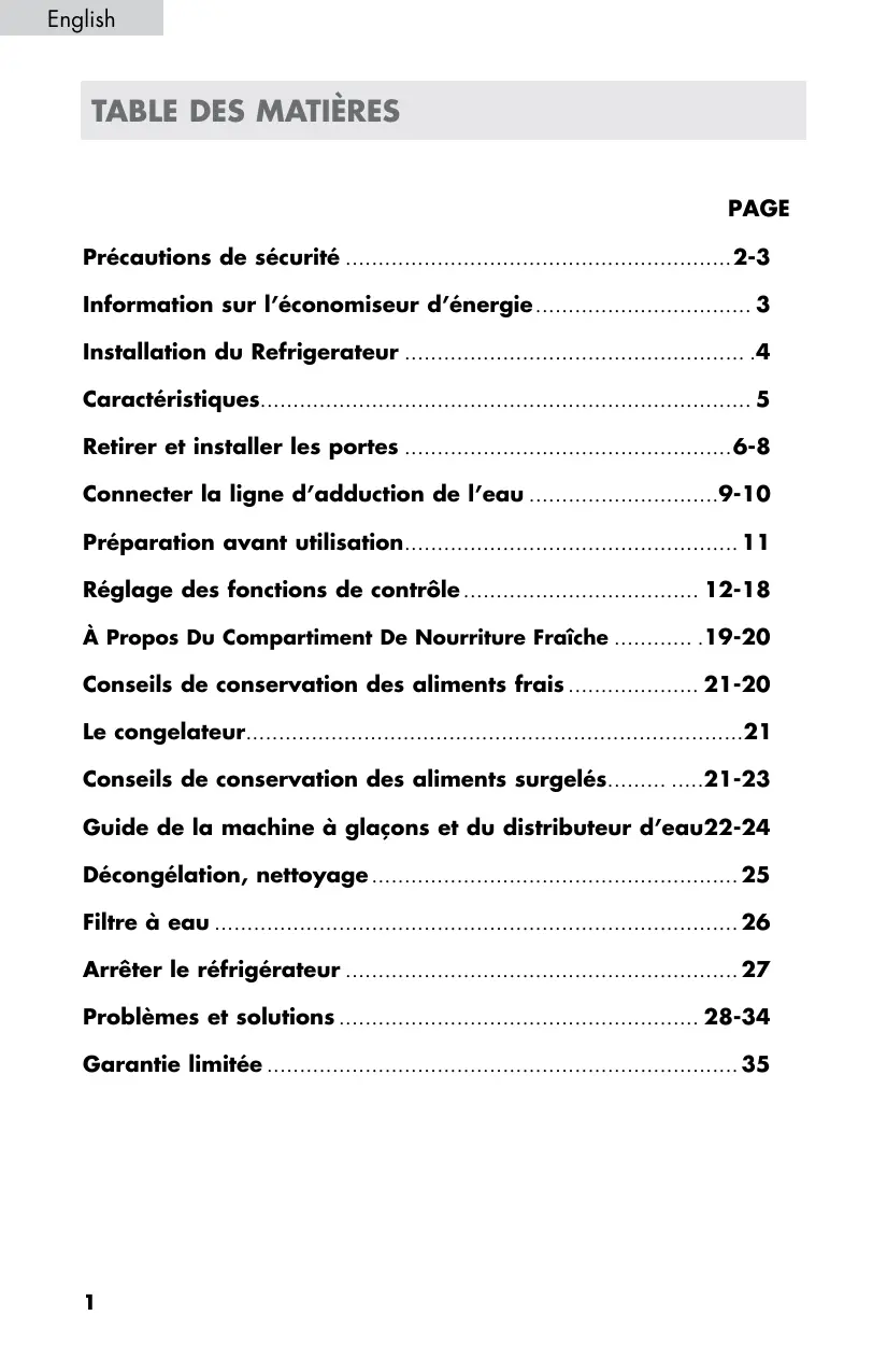 - -34 Garantie limitée p. 35