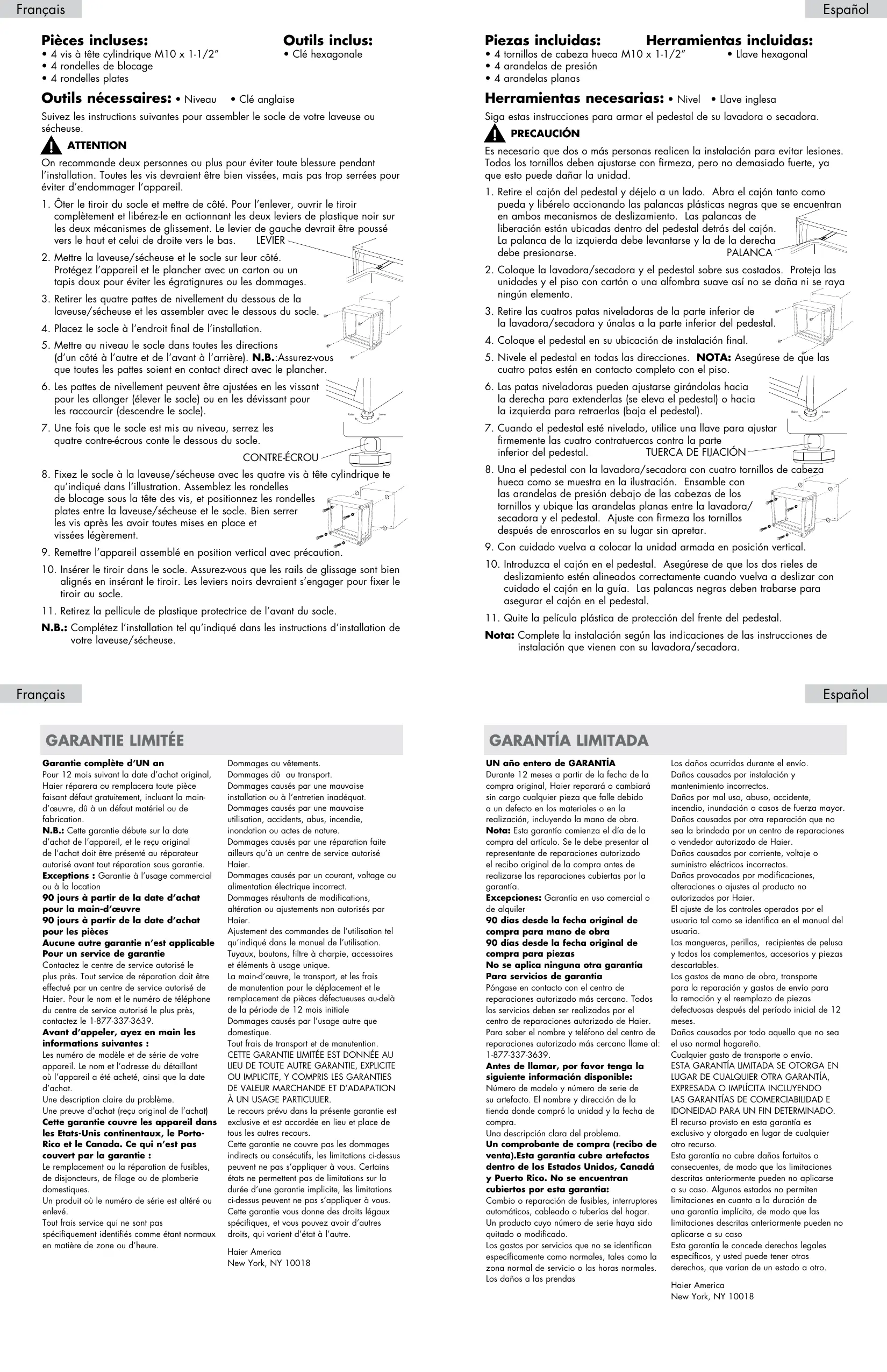 Suivez les instructions suivantes pour assembler le socle de votre laveuse ou séchuse.