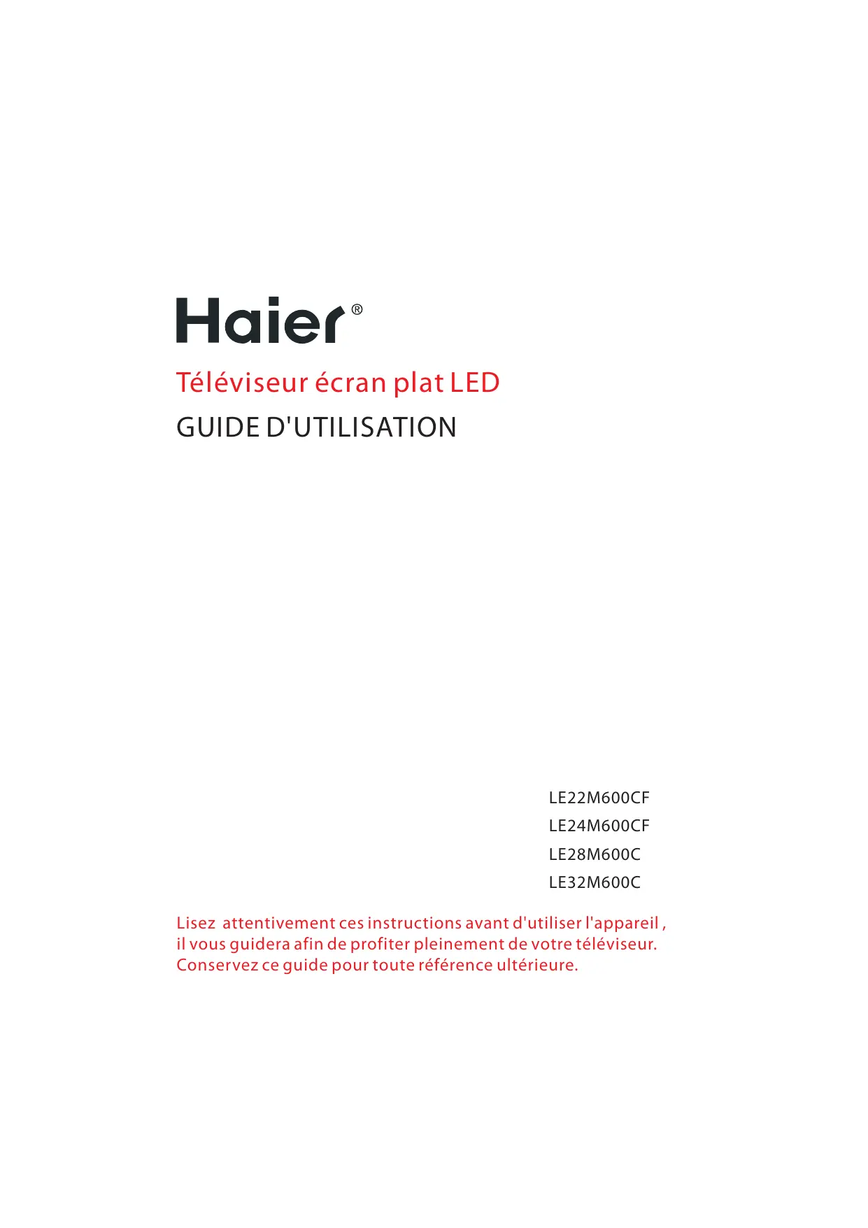 LE48M600CF - Téléviseur HAIER - Notice d'utilisation et mode d'emploi gratuit