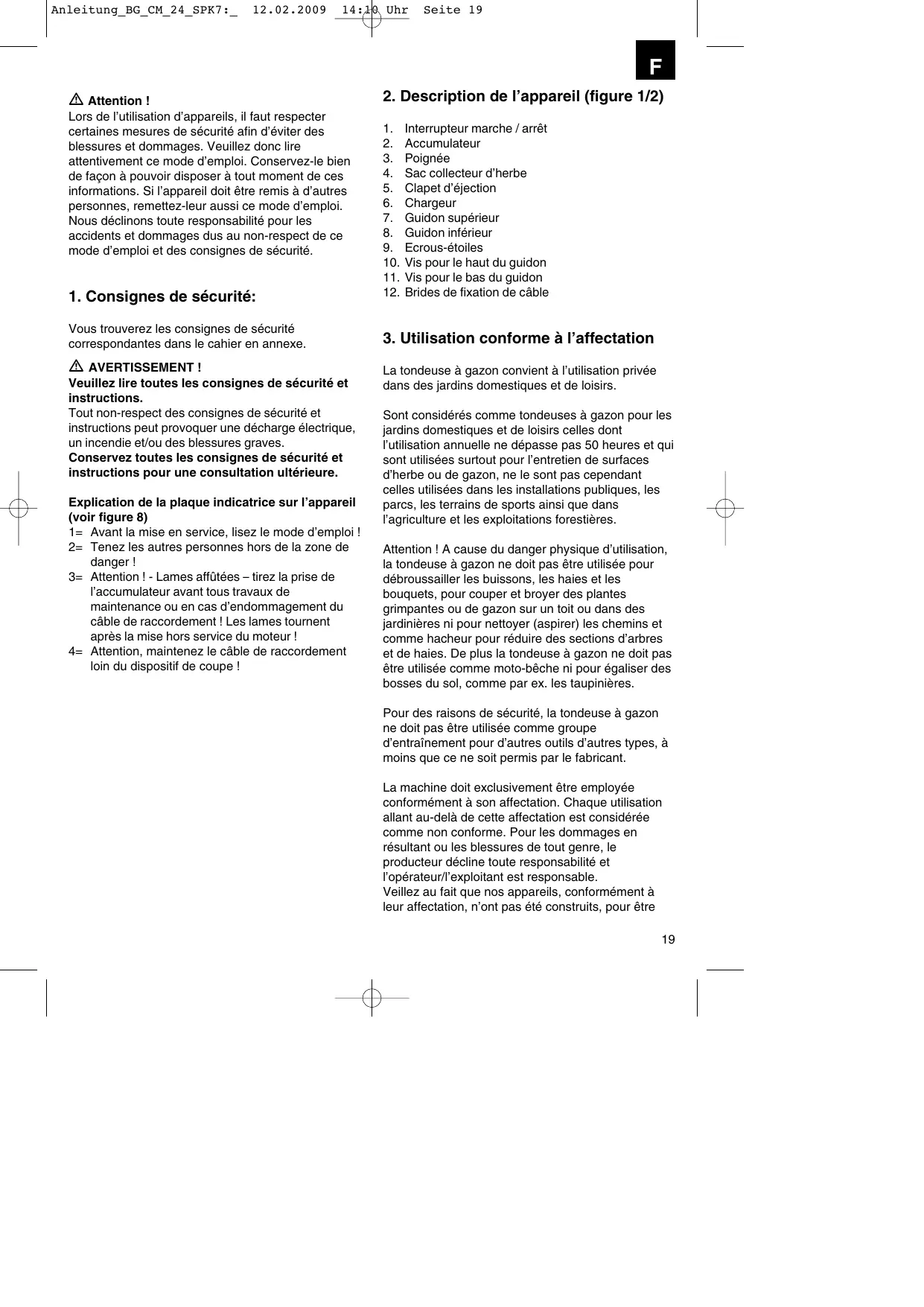 BG-CM 24 - Tondeuse à gazon EINHELL - Notice d'utilisation et mode d'emploi gratuit
