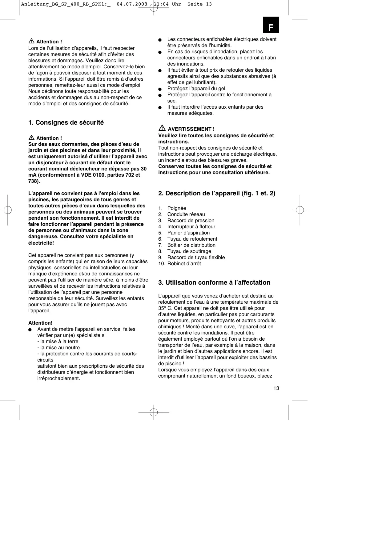 BG-SP 400 RB - Pompe de surface EINHELL - Notice d'utilisation et mode d'emploi gratuit