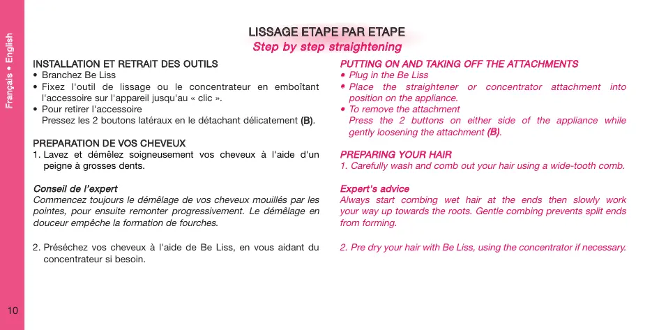 • Nous vous conseillons de nettoyer l'embout de lissage exclusif régulièrement pour