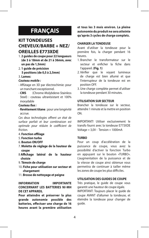 Retrouvez gratuitement la notice de l'appareil E773XDE BABYLISS au format PDF.