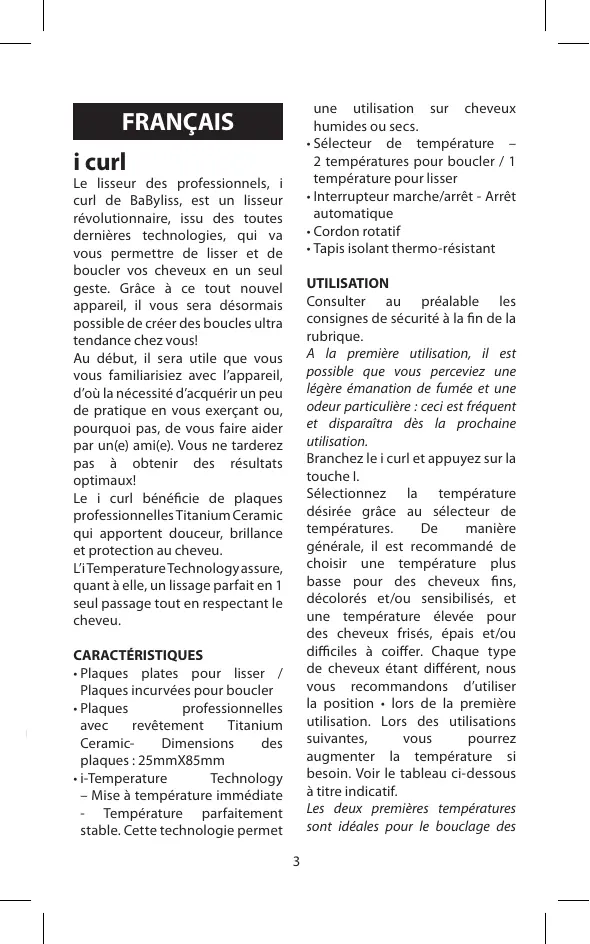 Le lisseur des professionnels, i curl de BaByliss, est un lisseur revolutionnaire, issu des toutes dernières technologies, qui va vous permettre de lisser et de boucler vos cheveux en un seul geste. Grace a ce tout nouvel apparil, il vous sera désormais possible de creer des bocles ultra tendance chez vous!