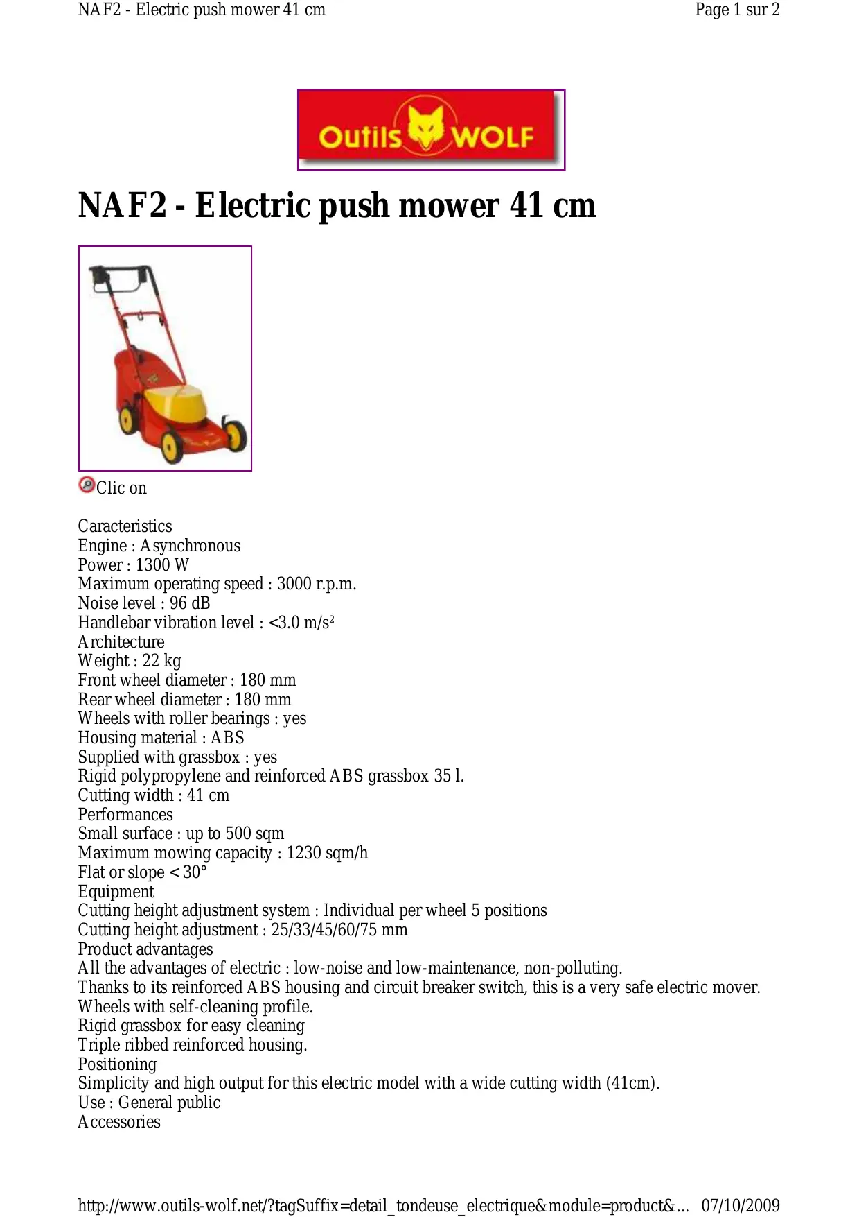 NAF2 - Tondeuse à gazon électrique WOLF - Notice d'utilisation et mode d'emploi gratuit