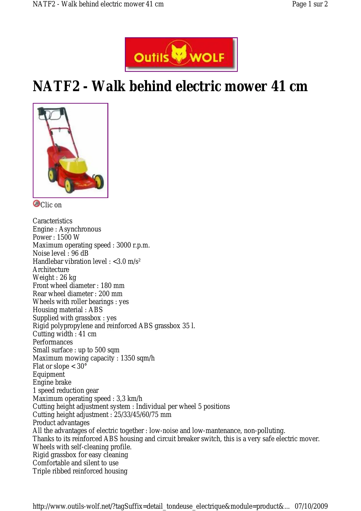 NATF2 - Tondeuse à gazon électrique WOLF - Notice d'utilisation et mode d'emploi gratuit