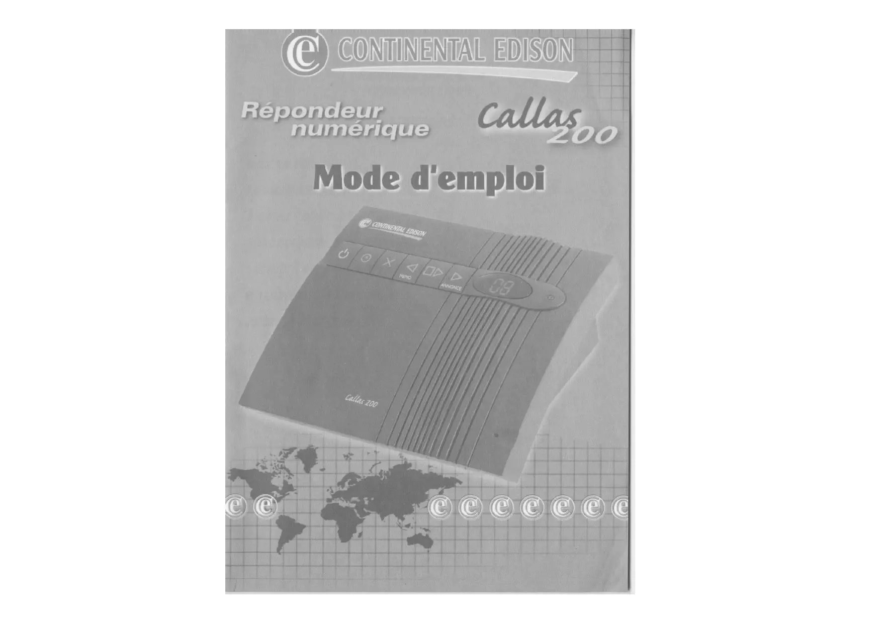 CALLAS 200 - Répondeur téléphonique numérique CONTINENTAL EDISON - Notice d'utilisation et mode d'emploi gratuit