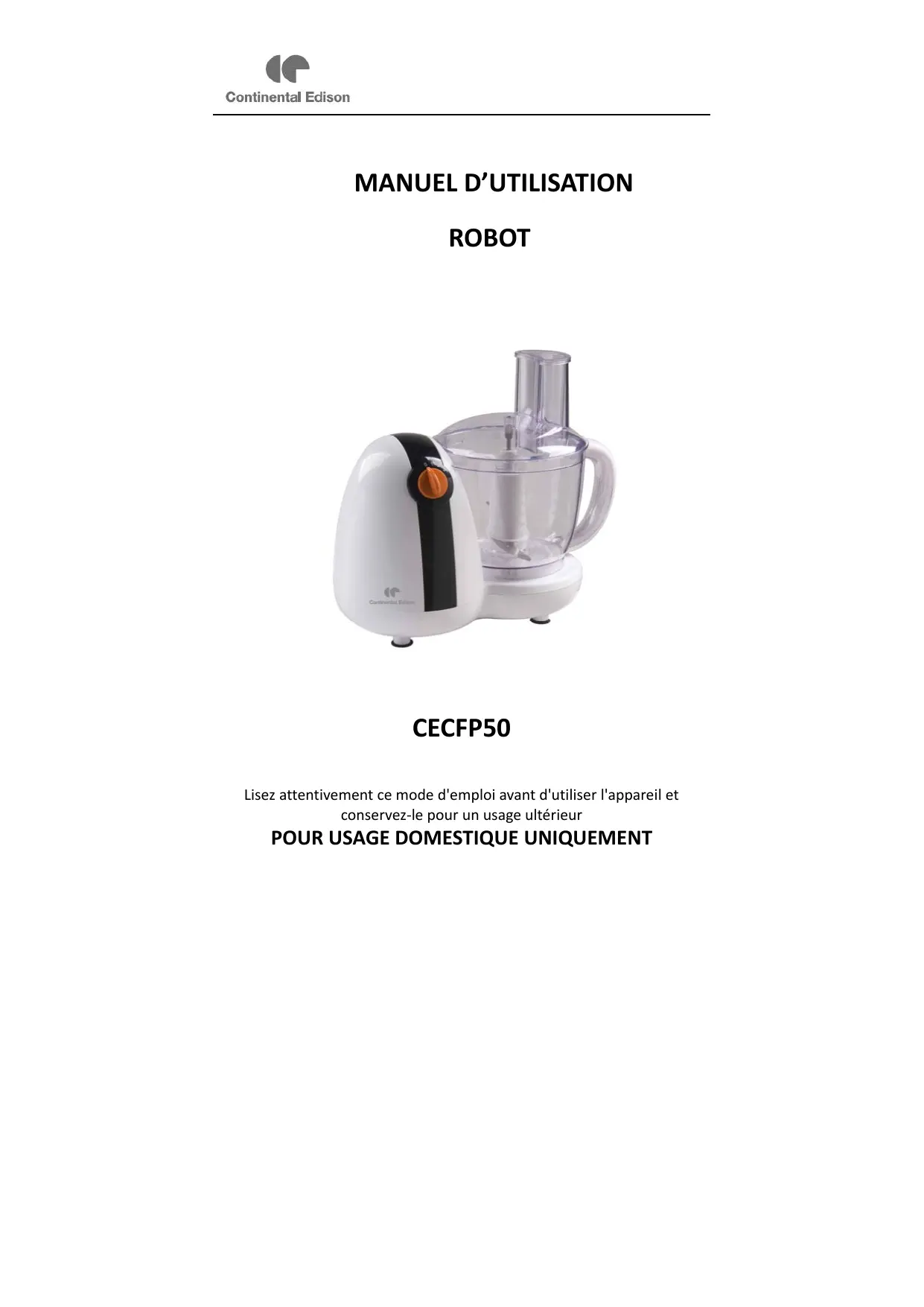 CECFP50 - Robot ménager CONTINENTAL EDISON - Notice d'utilisation et mode d'emploi gratuit