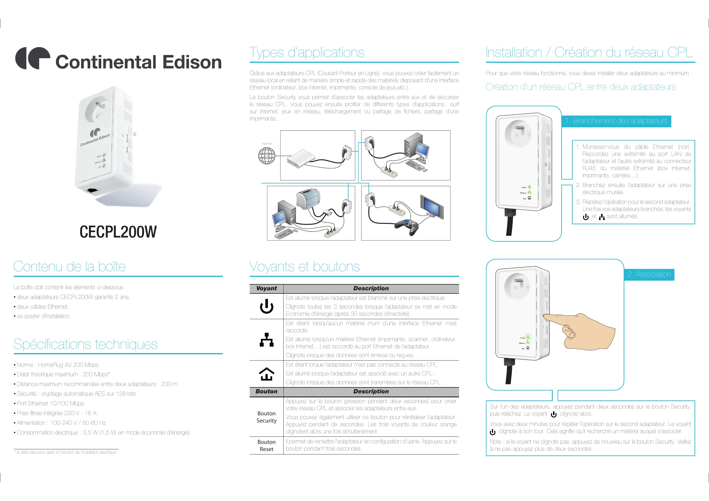 CECPL200W - Adaptateur CPL CONTINENTAL EDISON - Notice d'utilisation et mode d'emploi gratuit