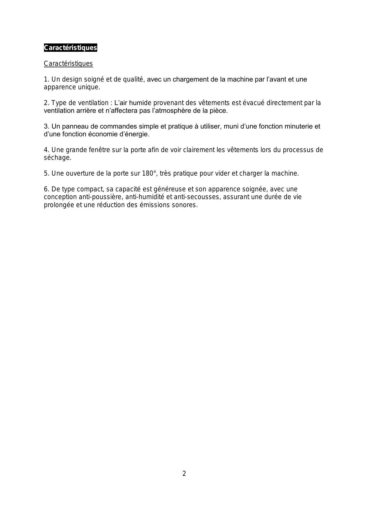 Caractéristiques 2