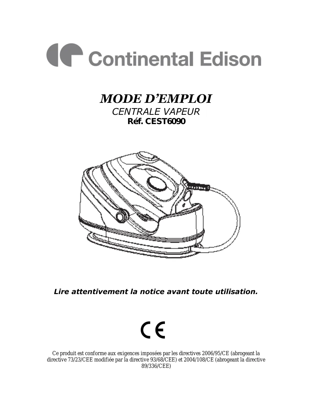 CEST6090 - Centrale vapeur CONTINENTAL EDISON - Notice d'utilisation et mode d'emploi gratuit