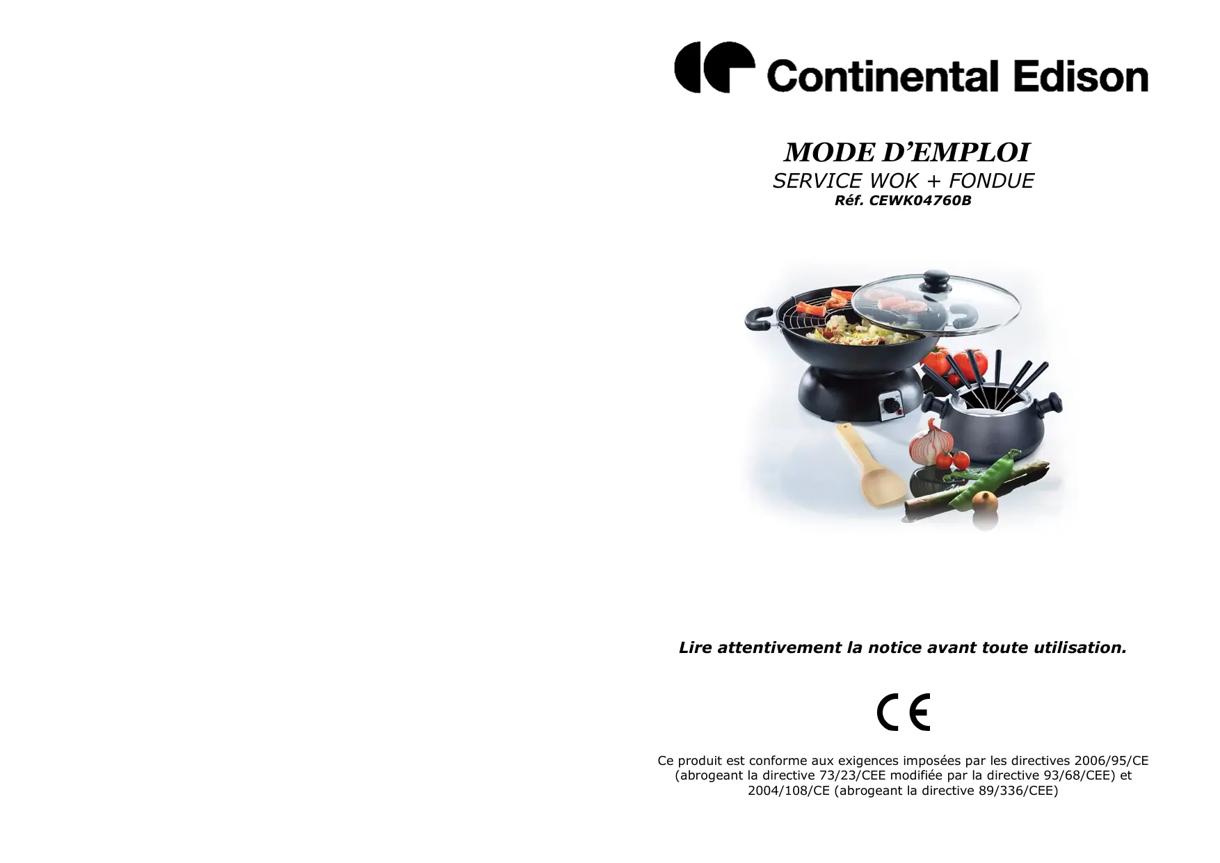 CEWK04760B - Appareil de cuisson électrique CONTINENTAL EDISON - Notice d'utilisation et mode d'emploi gratuit