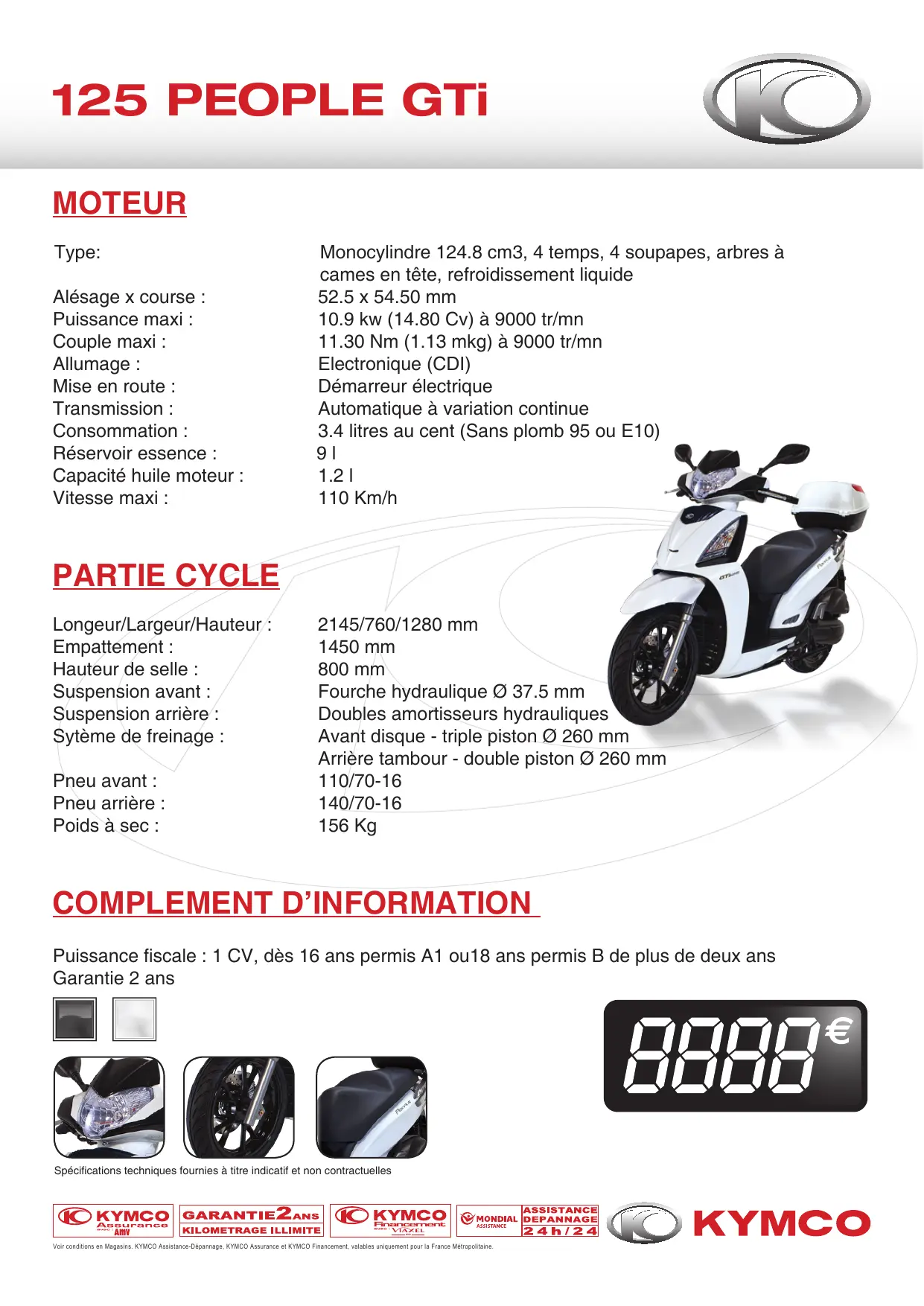 | Caractéristiques techniques principales | KYMCO 125 PEOPLE GTI |