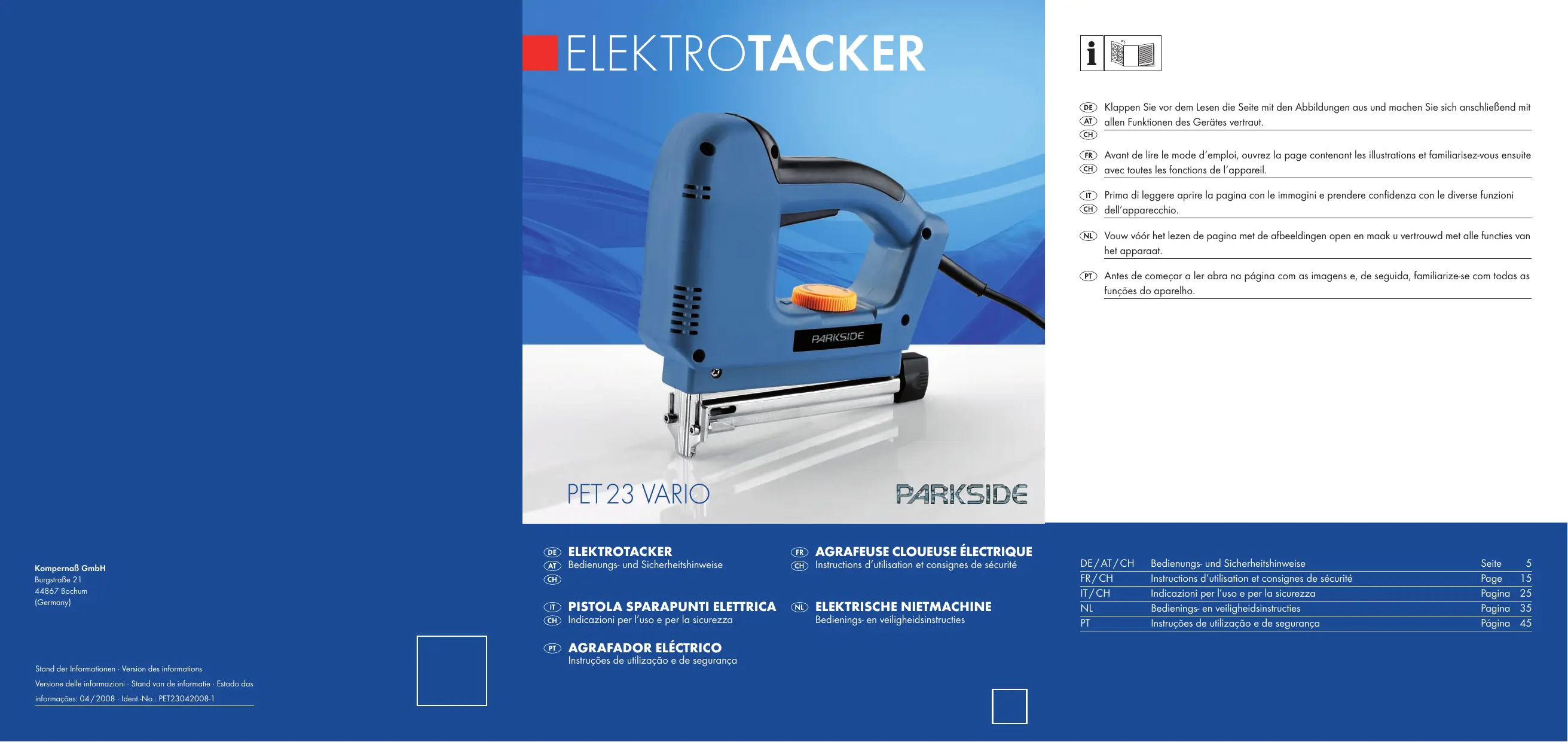 Retrouvez gratuitement la notice de l'appareil PET 23 PARKSIDE au format PDF.