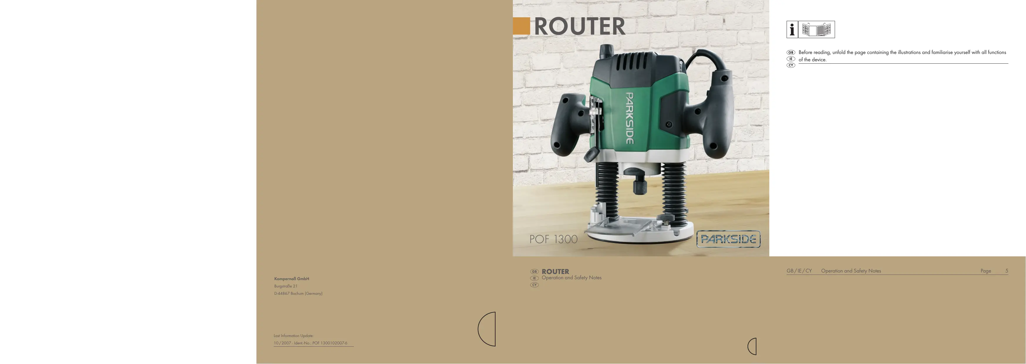 POF 1300 - Outil électrique PARKSIDE - Notice d'utilisation et mode d'emploi gratuit