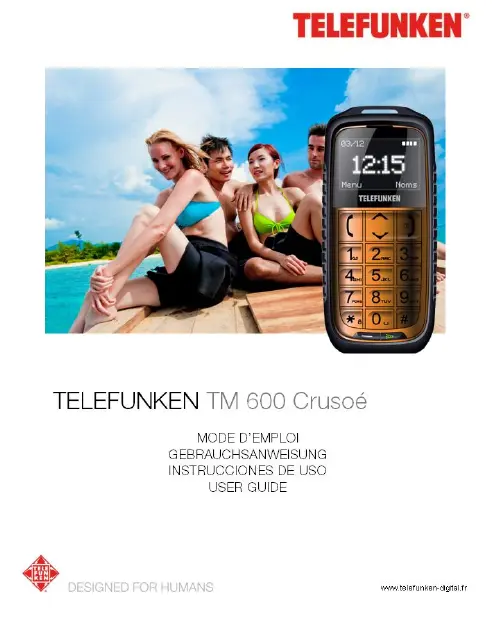 TM 600 - Téléphone mobile TELEFUNKEN - Notice d'utilisation et mode d'emploi gratuit