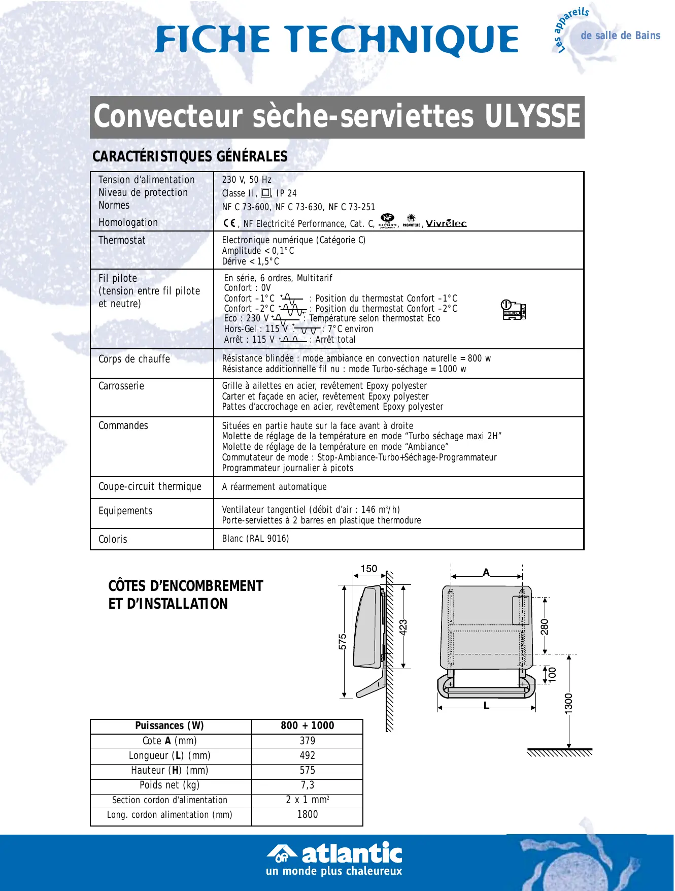 Retrouvez gratuitement la notice de l'appareil CONVECTEUR SECHE-SERVIETTES ULYSSE ATLANTIC au format PDF.