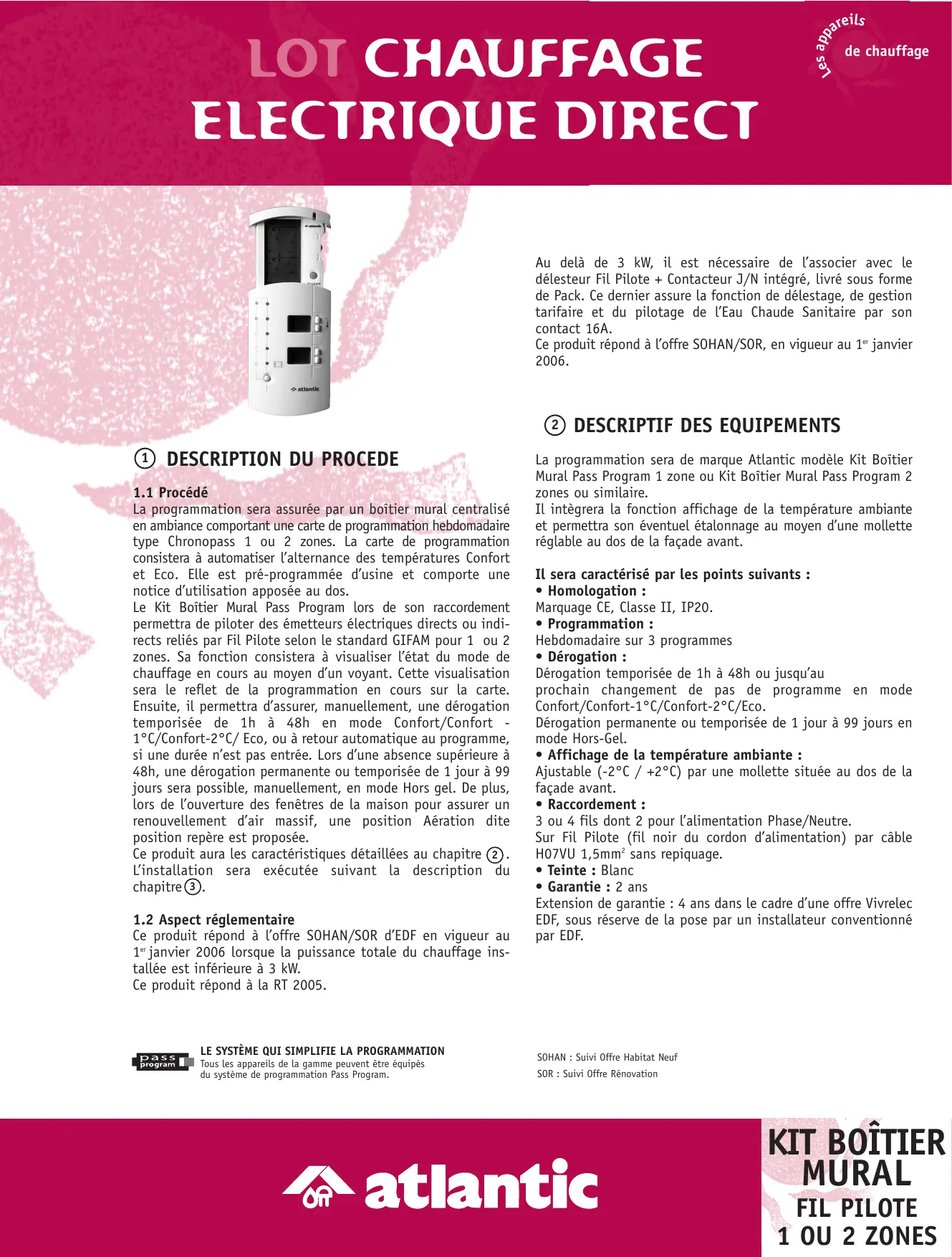 Retrouvez gratuitement la notice de l'appareil KIT BOITIER MURAL FIL PILOTE ATLANTIC au format PDF.