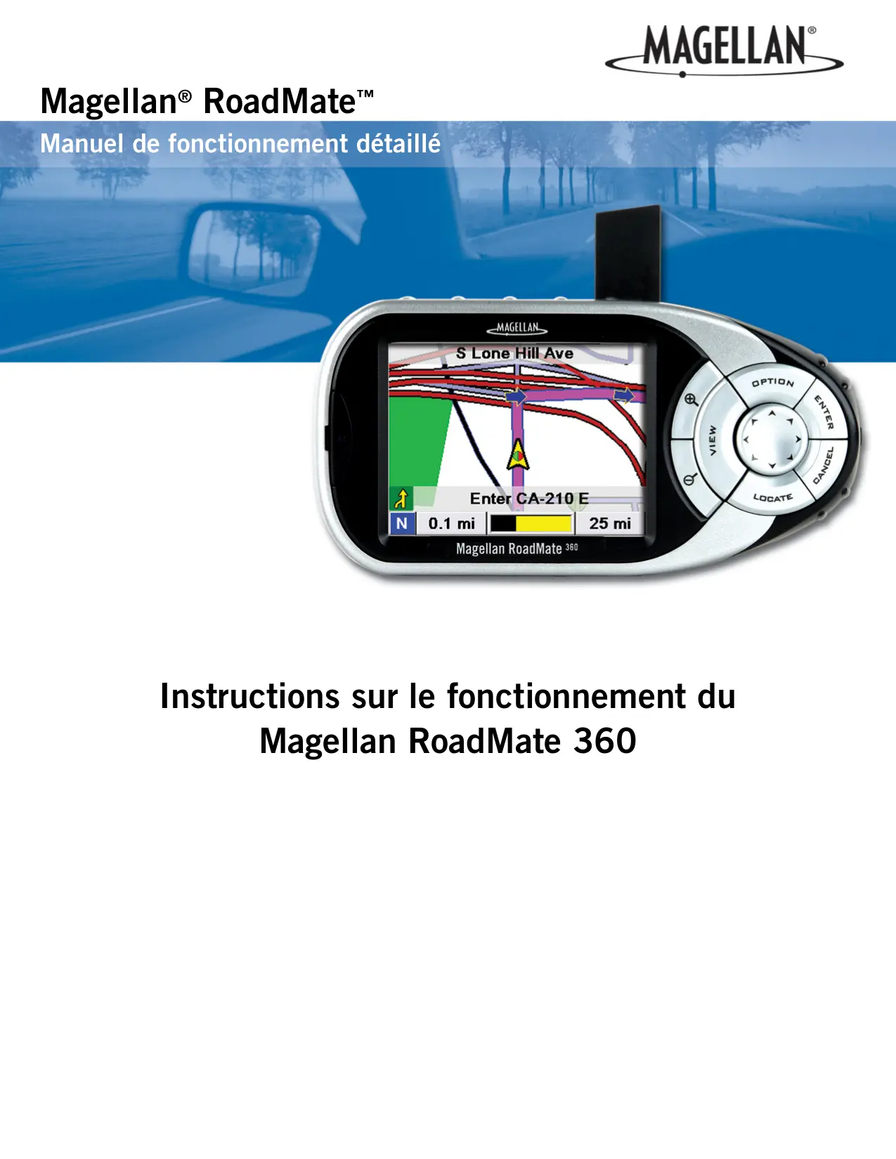 Magellan® RoadMate™ Manuel de fonctionnement détaillé Instructions sur le fonctionnement du Magellan RoadMate 360