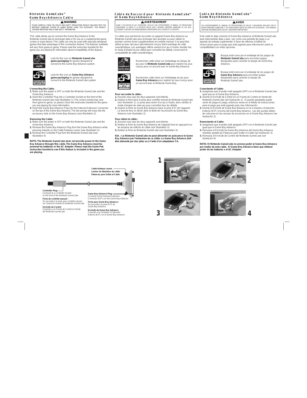 N. B. : Le Nintendo GameCube ne peut alimenter en puissance le Game Boy Advance par l'entremise de ce câble. Le Game Boy Advance doit être alimenté par des piles ou à l'aide d'un adaptateur CA.