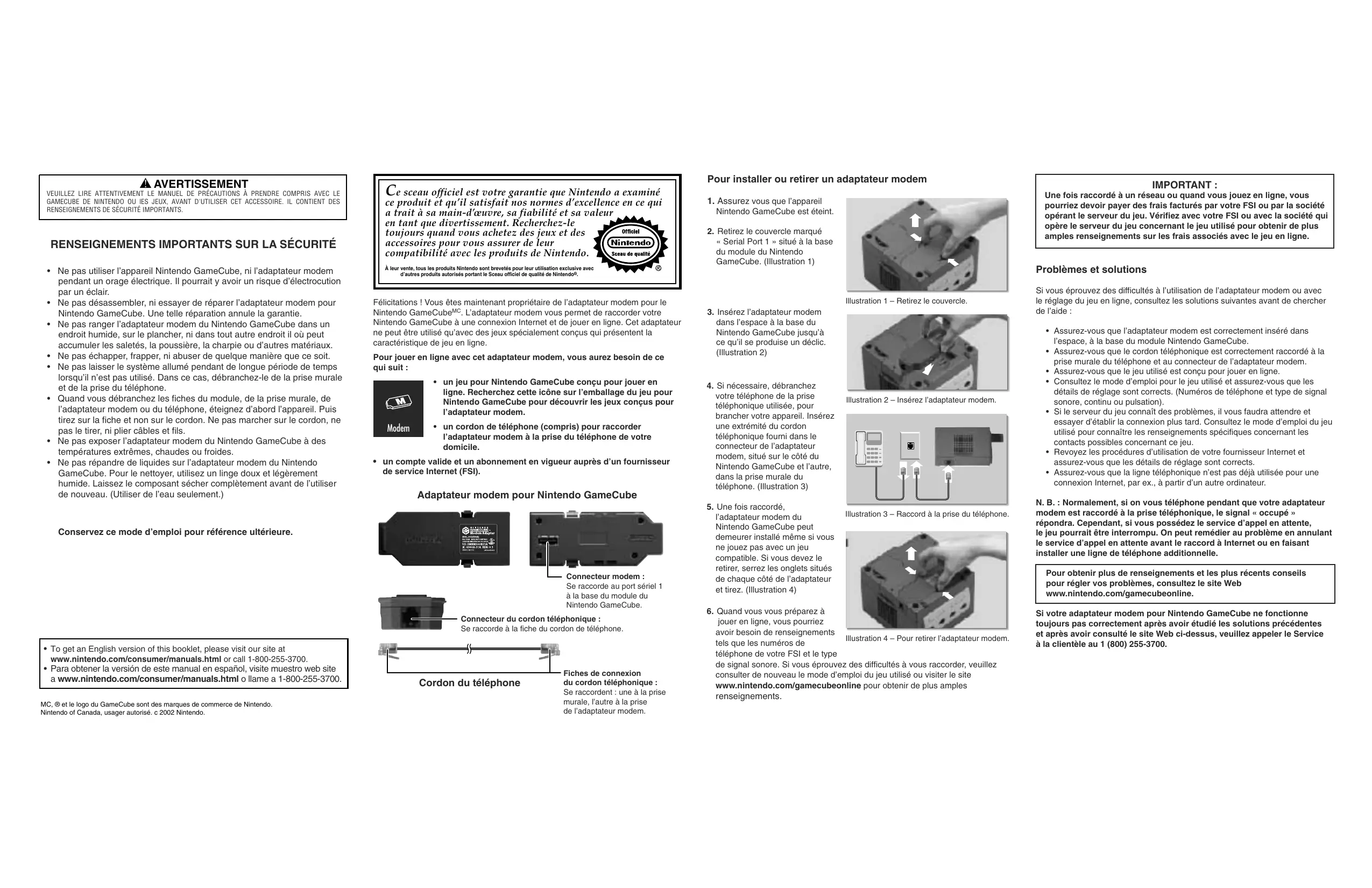 MODE D'EMPLOI GAMECUBE MODEM ADAPTER NINTENDO