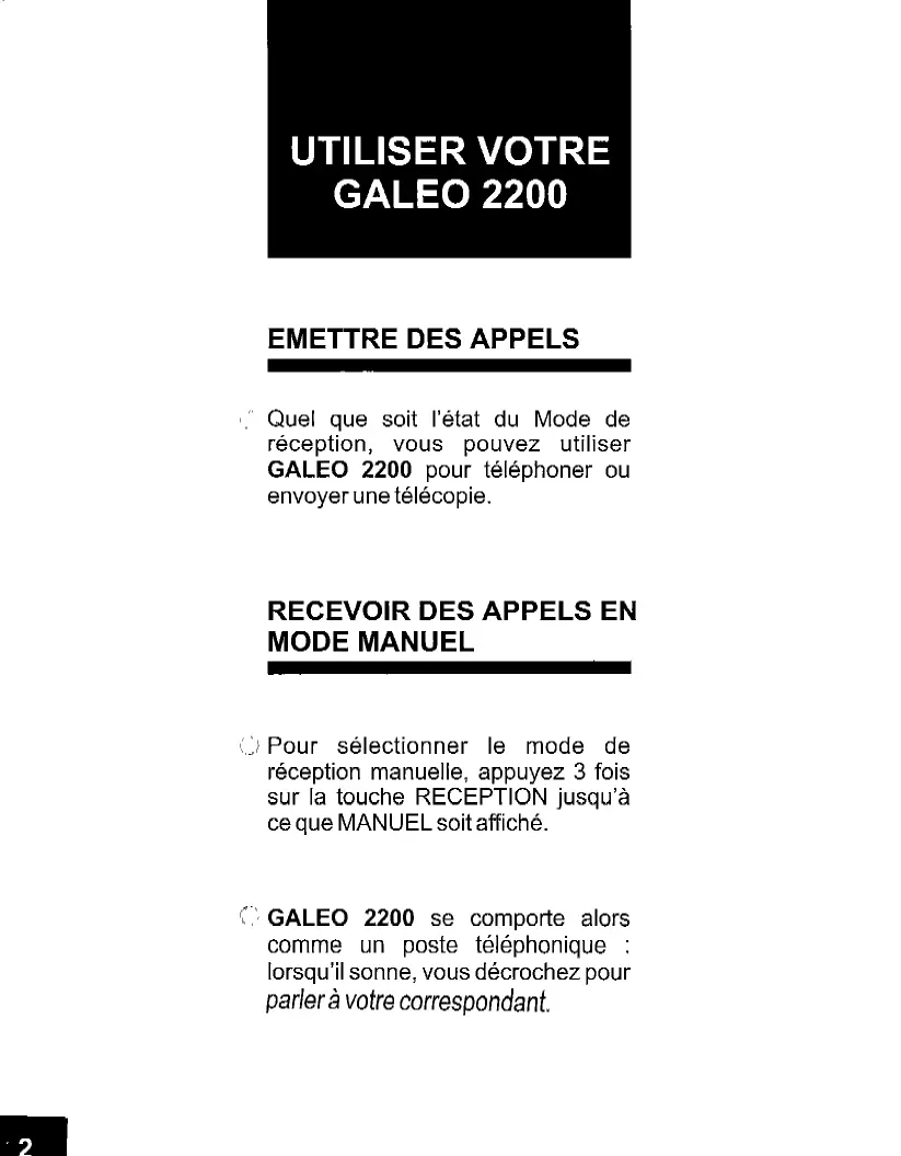 Quel que soit l'etat du Mode de réception, vous pouvez utiliser GALEO 2200 pour téléphoner ou envoyer une télécopie.