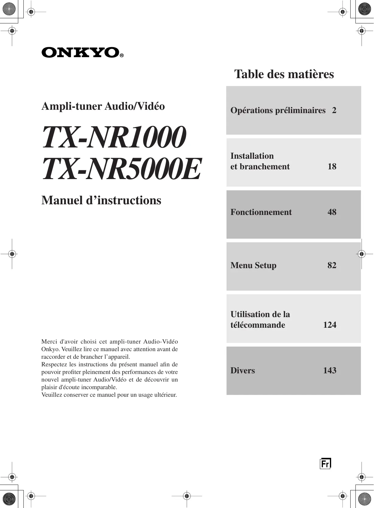 Merci d'avoir choisi cet ampli-tuner Audio-Vidéo Onkyo. Veuillez lire ce manuel avec attention avant de raccorder et de brancher l’appareil. Respectez les instructions du présent manuel afin de pouvoir profiter pleinement des performances de votre nouvel ampli-tuner Audio/Vidéo et de découvrir un plaisir d'écoute incomparable. Veuillez conserver ce manuel pour un usage ultérieur.