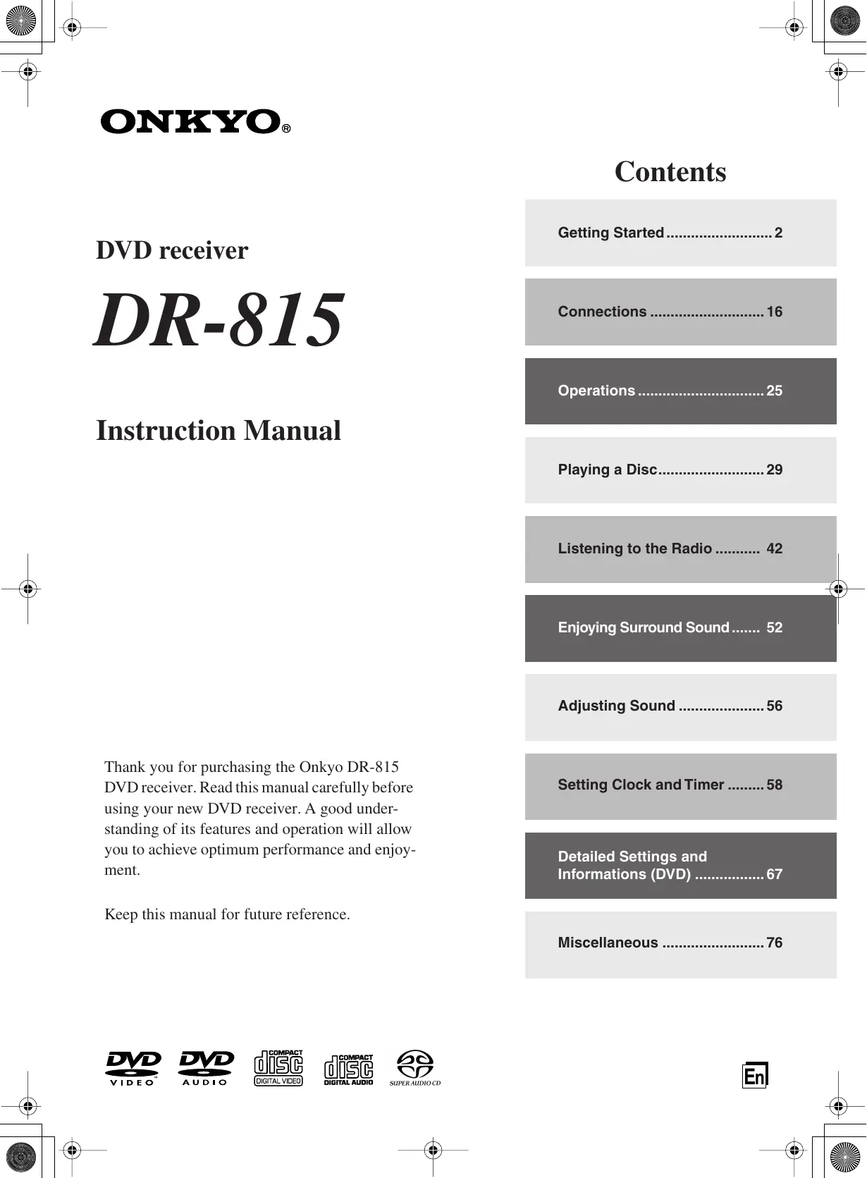 DR-815 - Récepteur audio/vidéo ONKYO - Notice d'utilisation et mode d'emploi gratuit